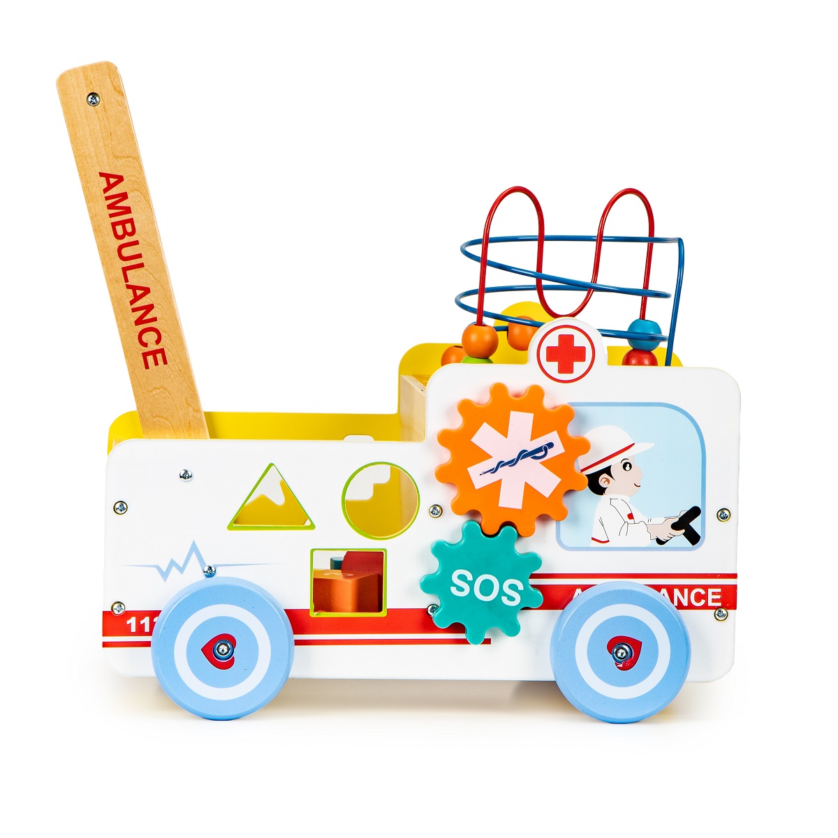 Produs: Antemergator 6 in1 din lemn Masina deSalvare Ambulanta - Premergator Masina Ambulance cu multiactivitati
