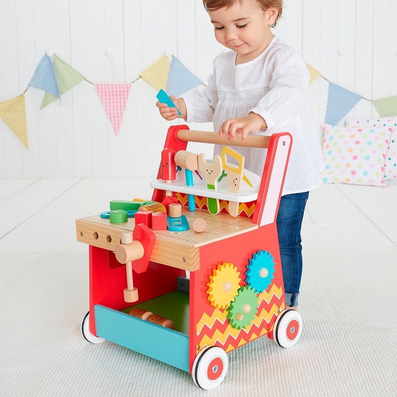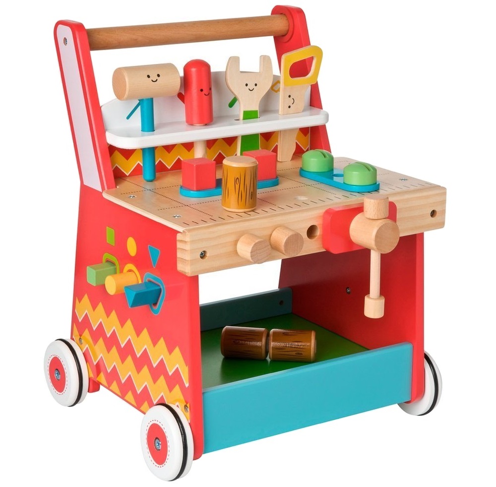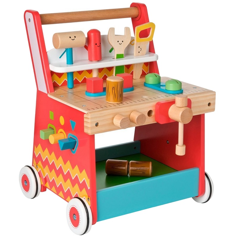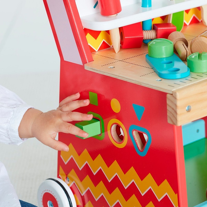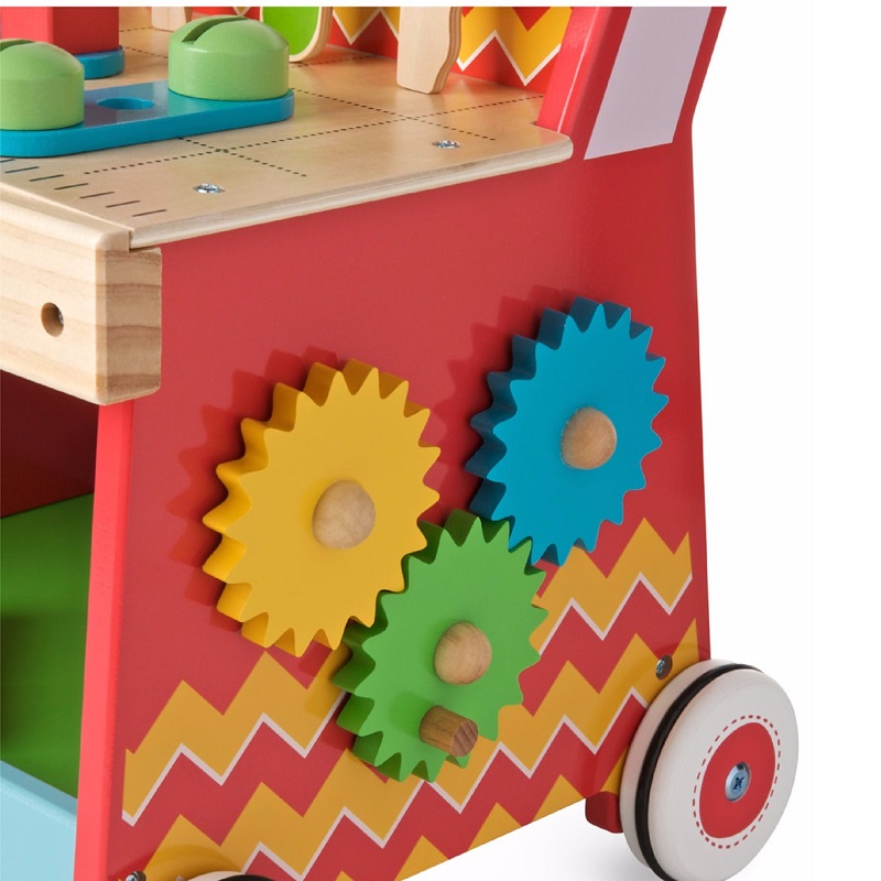 - Vine echipat cu o multitudine de unelte si instrumente de jucarie, cu diferite forme (22 de accesorii), cu ajutorul carora copiii vor avea multe activitati de facut si lucruri de descoperit,