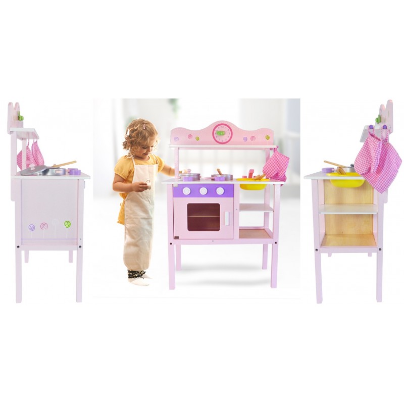 Bucatarie Roz de joaca pentru copii din lemn cu accesorii AcoolToy