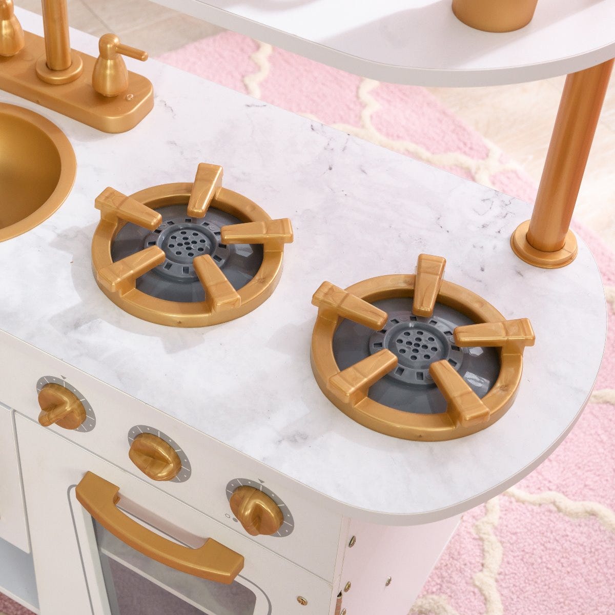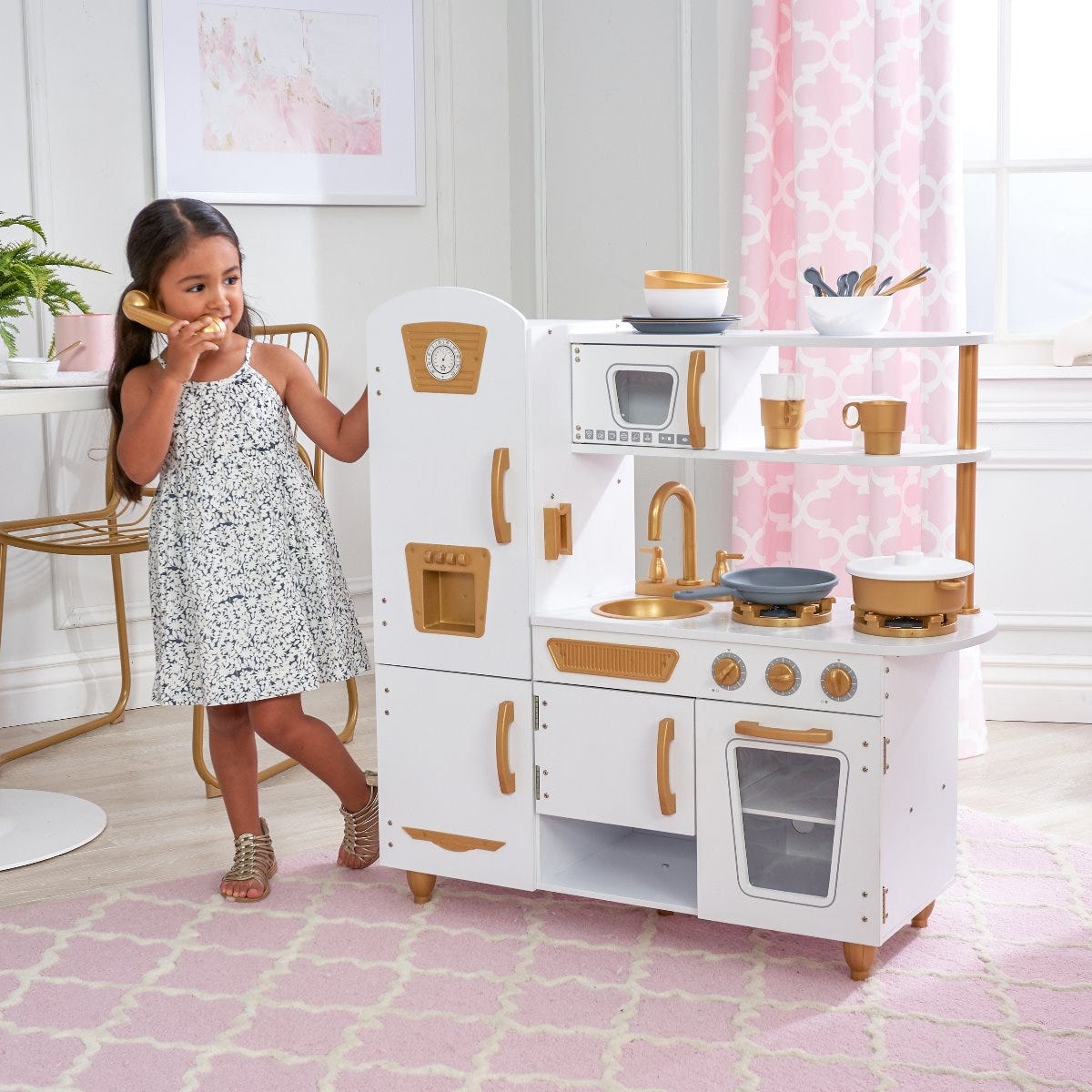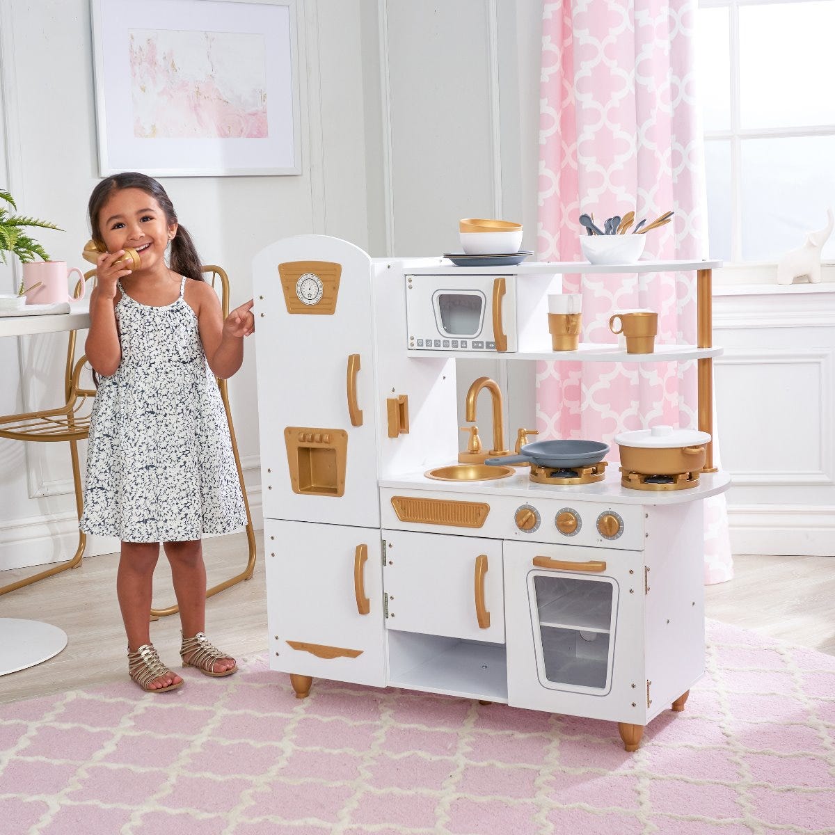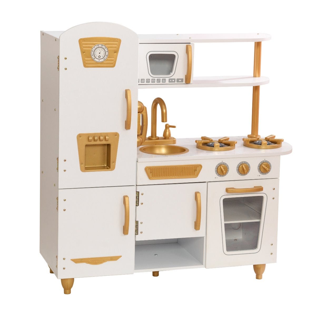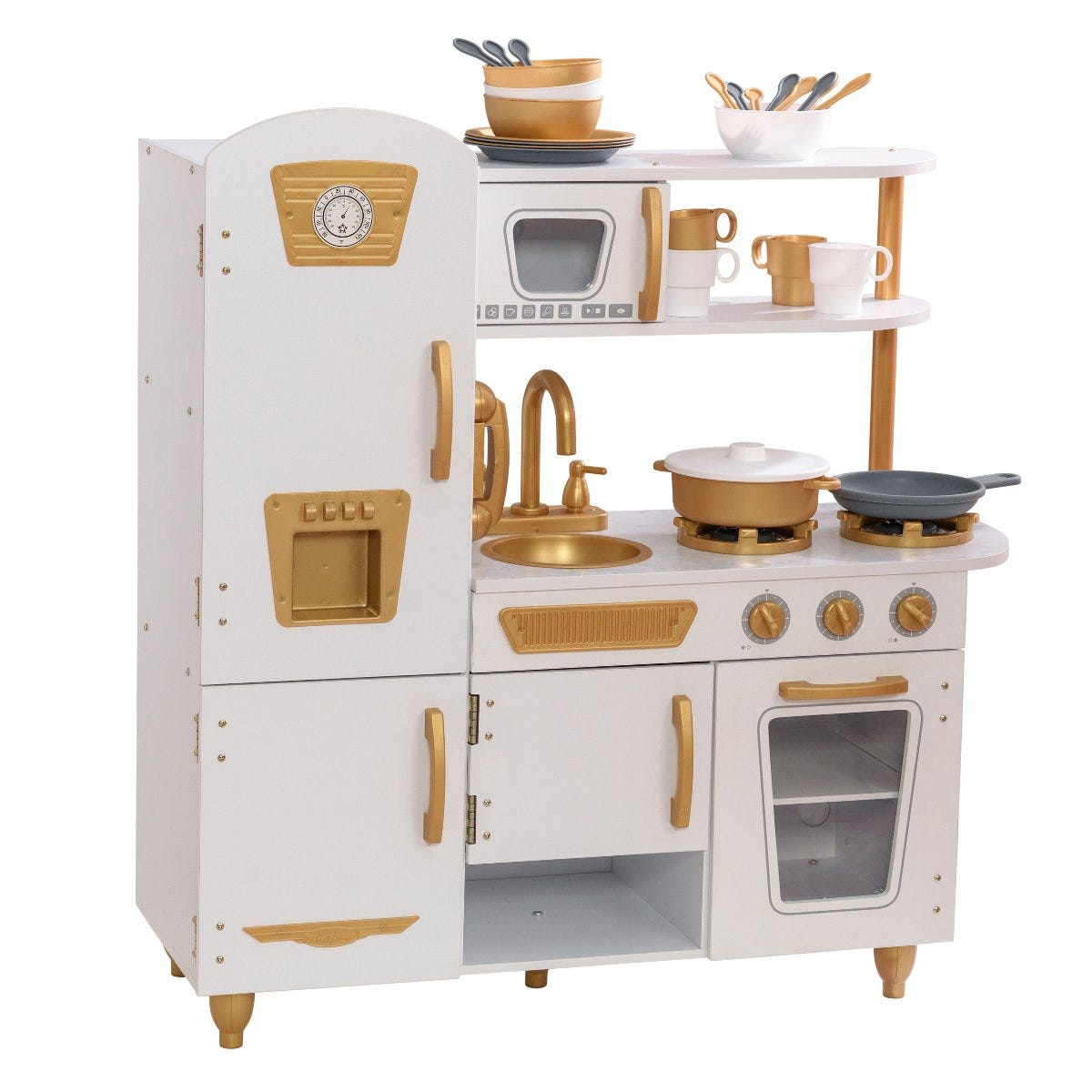 P r o d u s: Bucatarie Alba de joaca pentru copii - Bucatarie Clasica Vintage din lemn White and Gold Kitchen Kidkraft