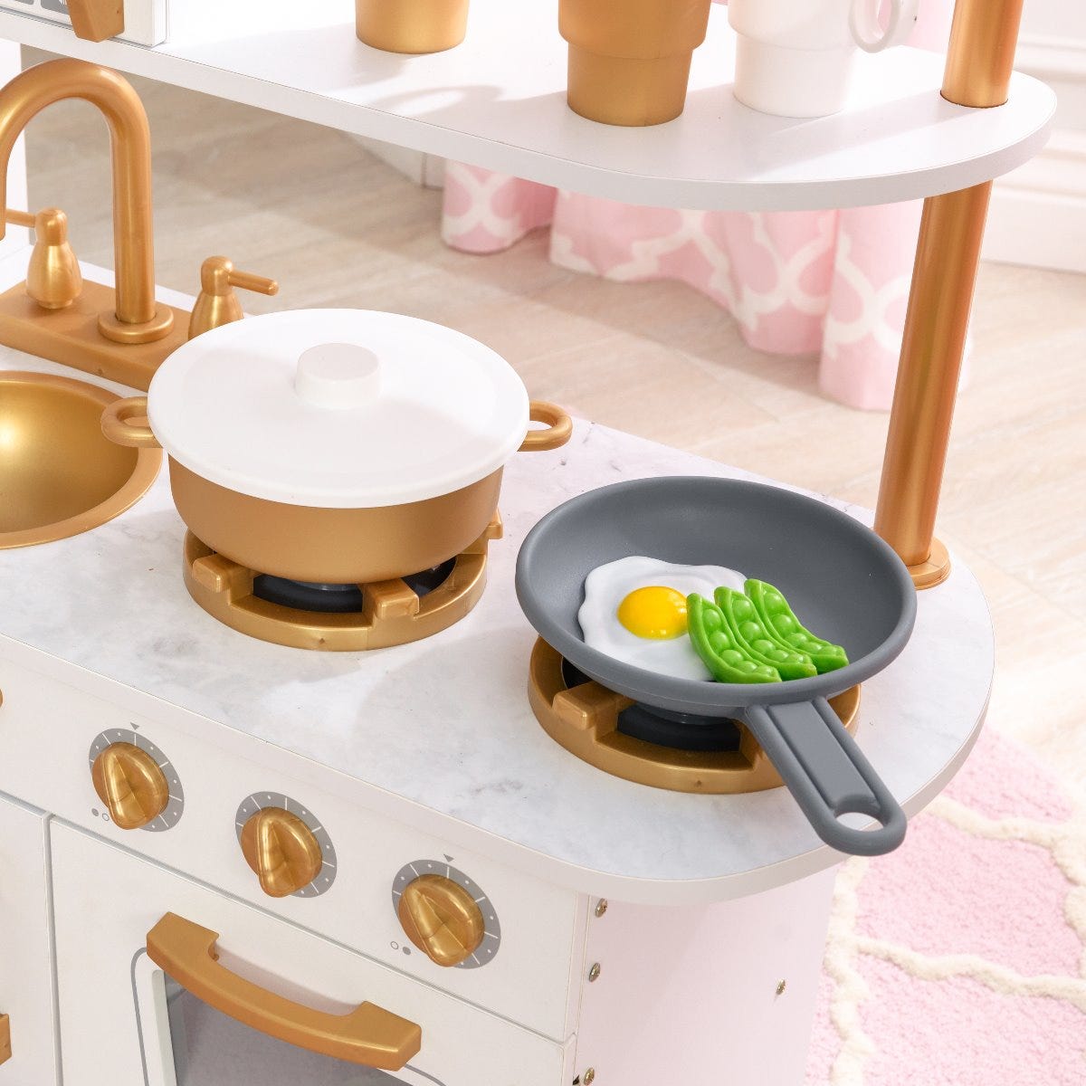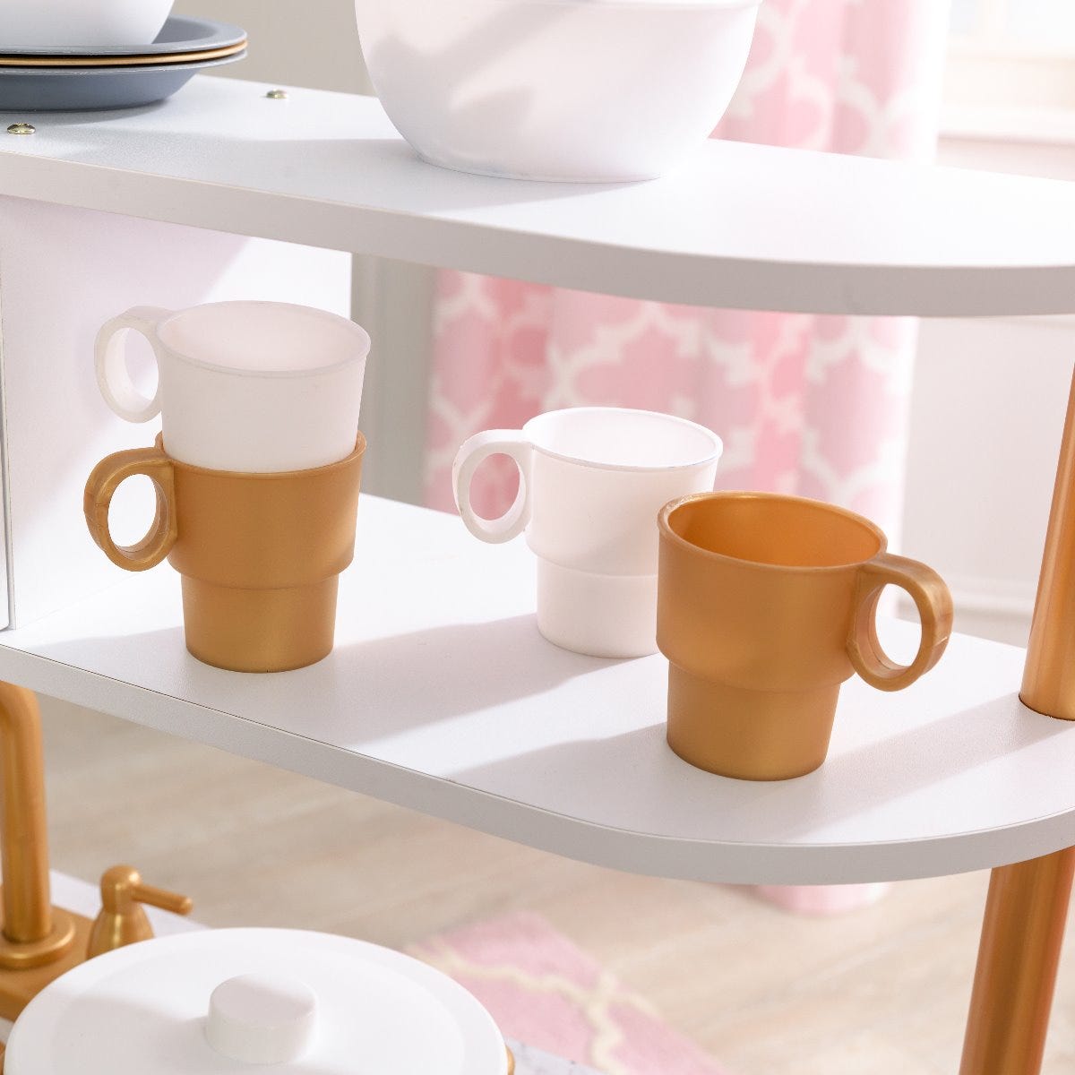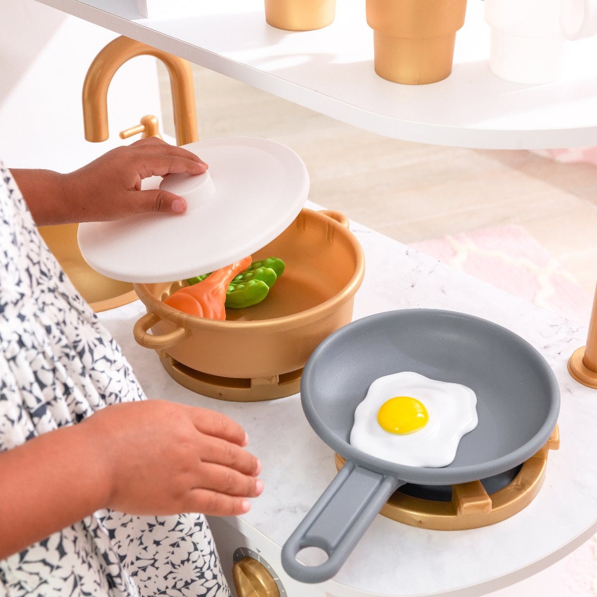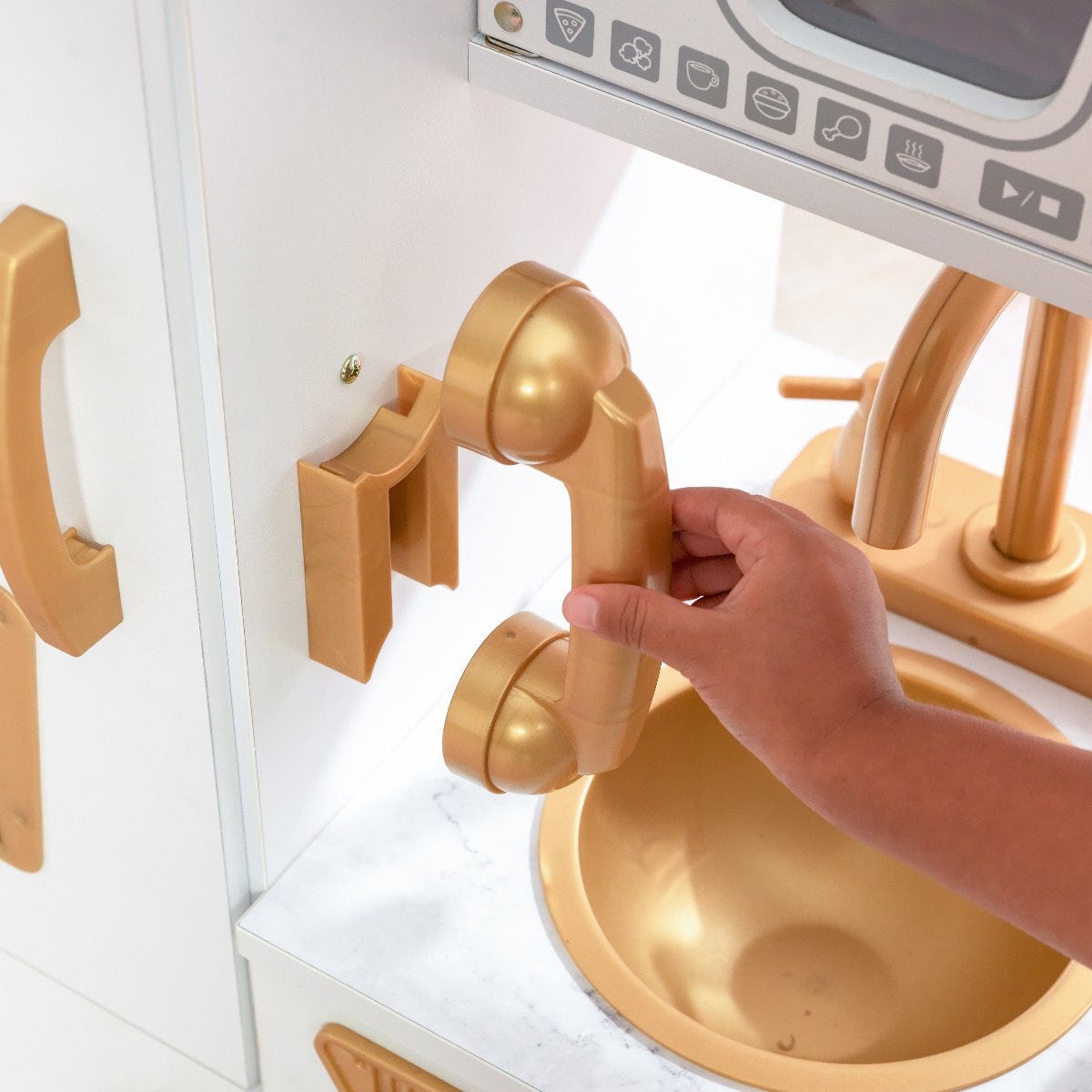 Bucatarie Moderna Alba de joaca pentru copii cu Accesorrii Incluse - Bucatarie Modern White and Gold din lemn de la Kidkraft