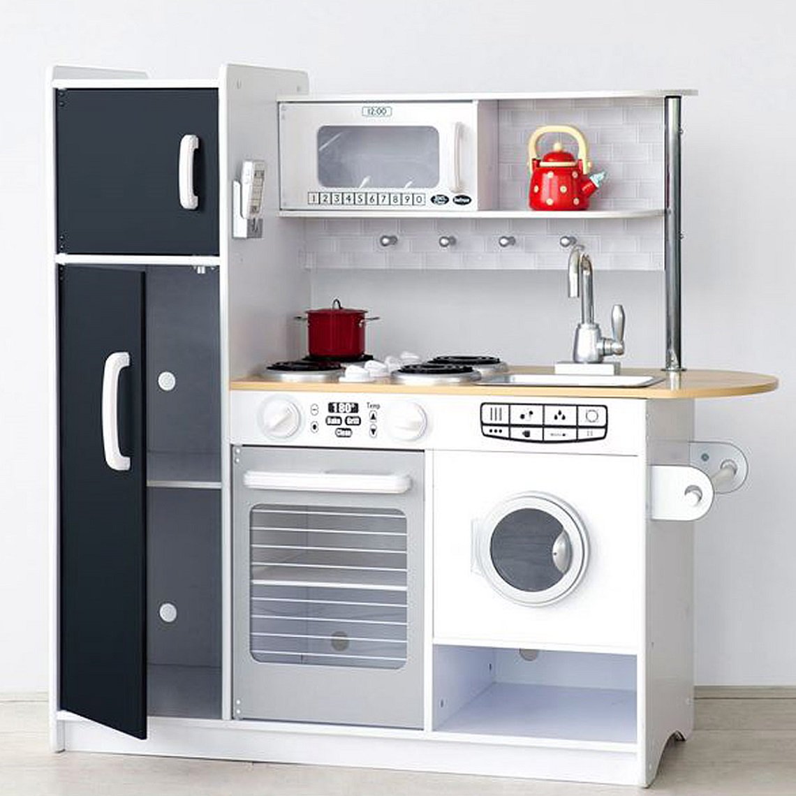 Bucatarie de joaca Pepperpot Kidkraft cu tabla de scris cu creta si masina de spalat