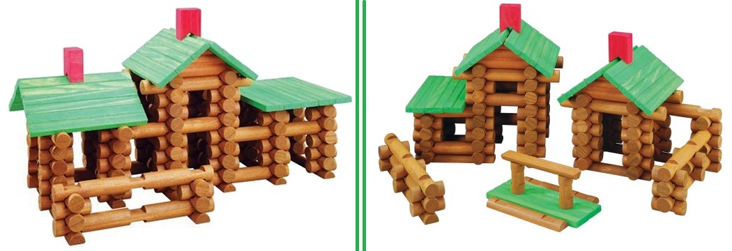 Piesele din lemn cilindric nu se lipesc, ele pot fi reasamblate, copiii pot construi multe construcții diferite.