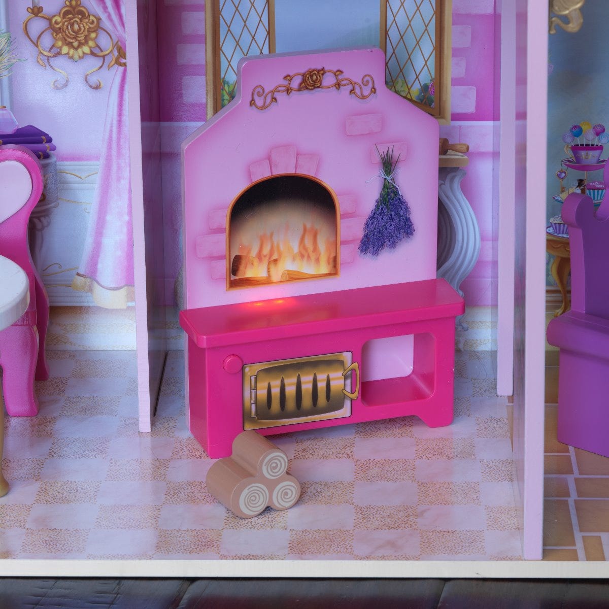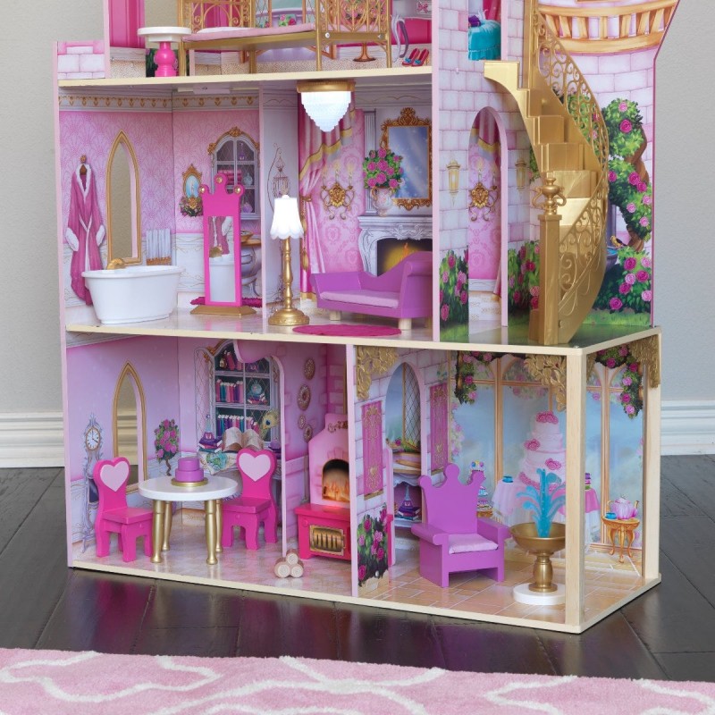 Casuta Castel din lemn pentru papusi ROSE Garden DollHouse Kidkraft cu sunete si lumni