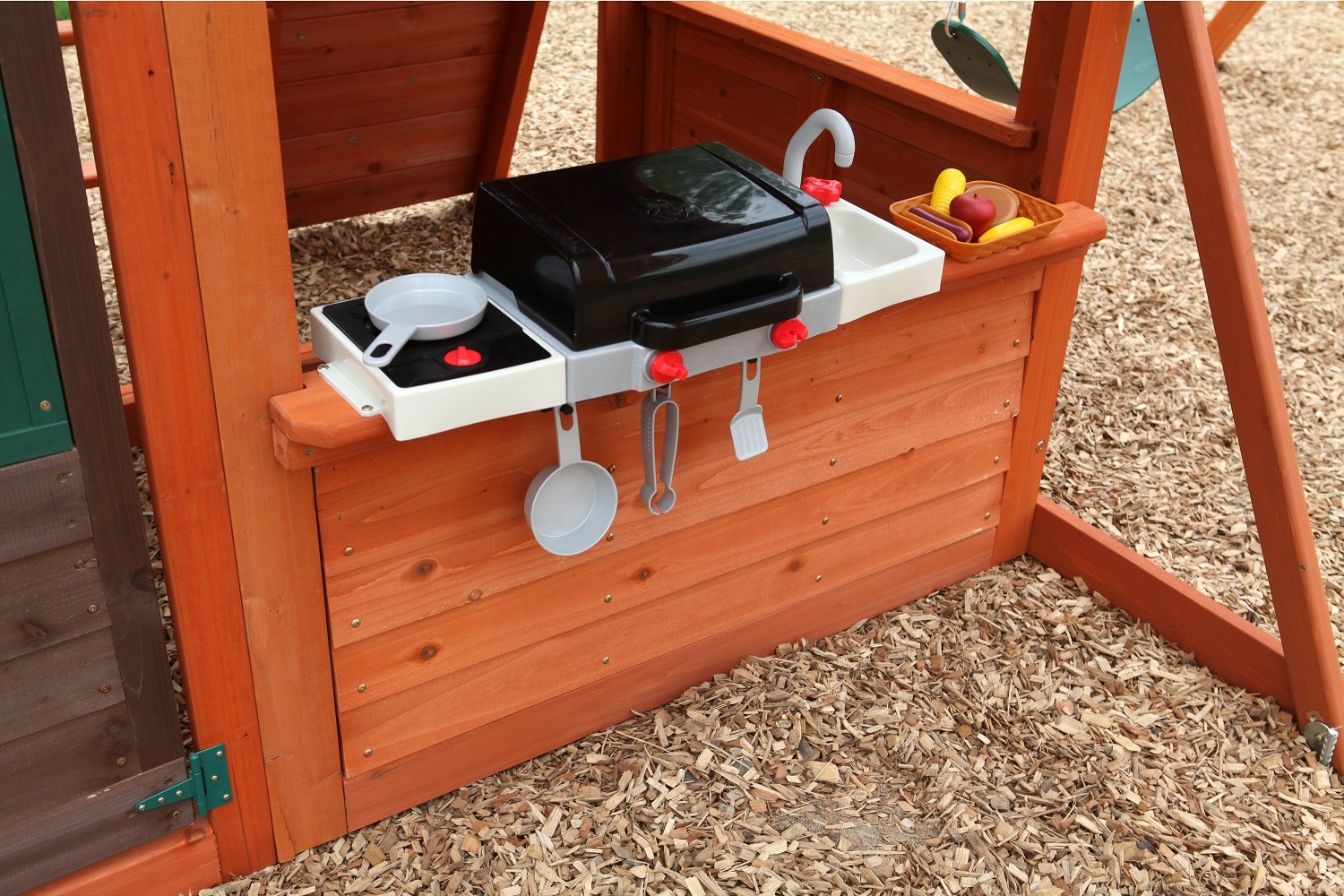 In interiorul acestui centru este situata si o bucătărie de joacă prevăzută cu un grătar, chiuvetă, aragaz și o mulțime de accesorii de gătit pentru copiii dvs. pentru a găti o multime de bunatati în propria lor casă.