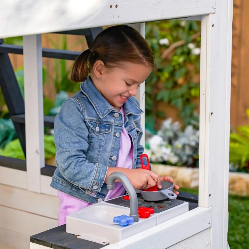 - Clubhouse cu două etaje, cu chiuvetă de bucătărie încorporată, robinet și arzător pentru jocuri de rol