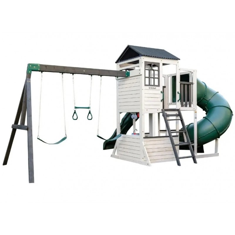 Complex cu Casuta Mare de Joaca pentru copii pe 2 niveluri - Complex cu Etaj si Tobogan Cozy Play WRANGLER de exterior din lemn - Kidkraft