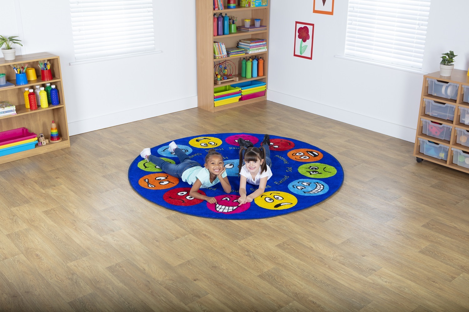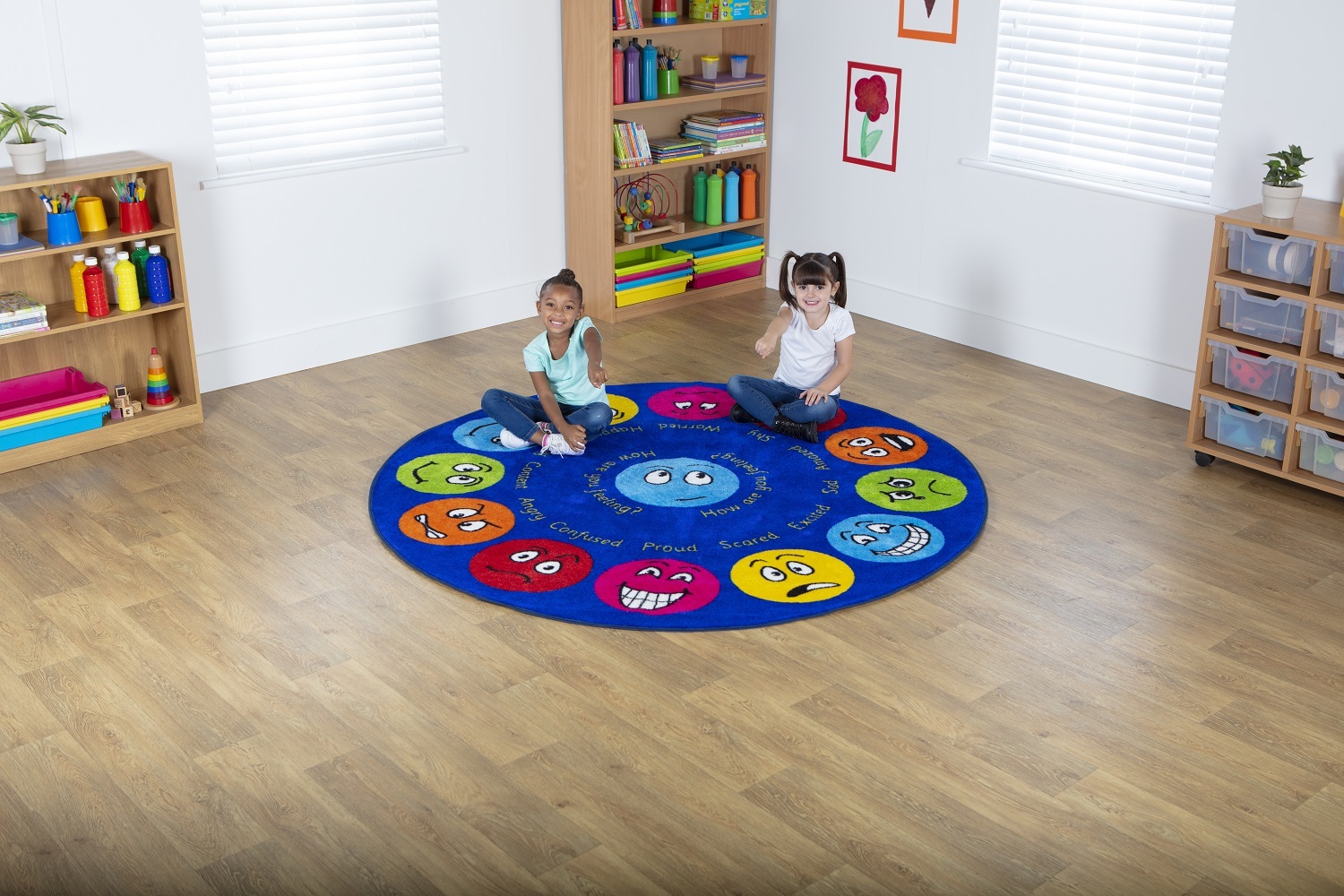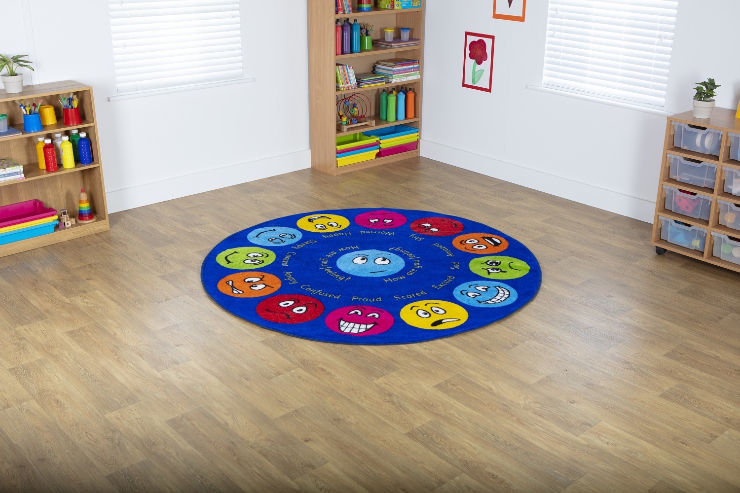 Acest covor circular extrem de vizual de 2 x 2 m are 12 emoții și sentimente diferite cu cuvinte cheie pentru a încuraja discuțiile de grup.Copiii pot alege o expresie pe care să stea în timpul lecțiilor de lectură și de grup.