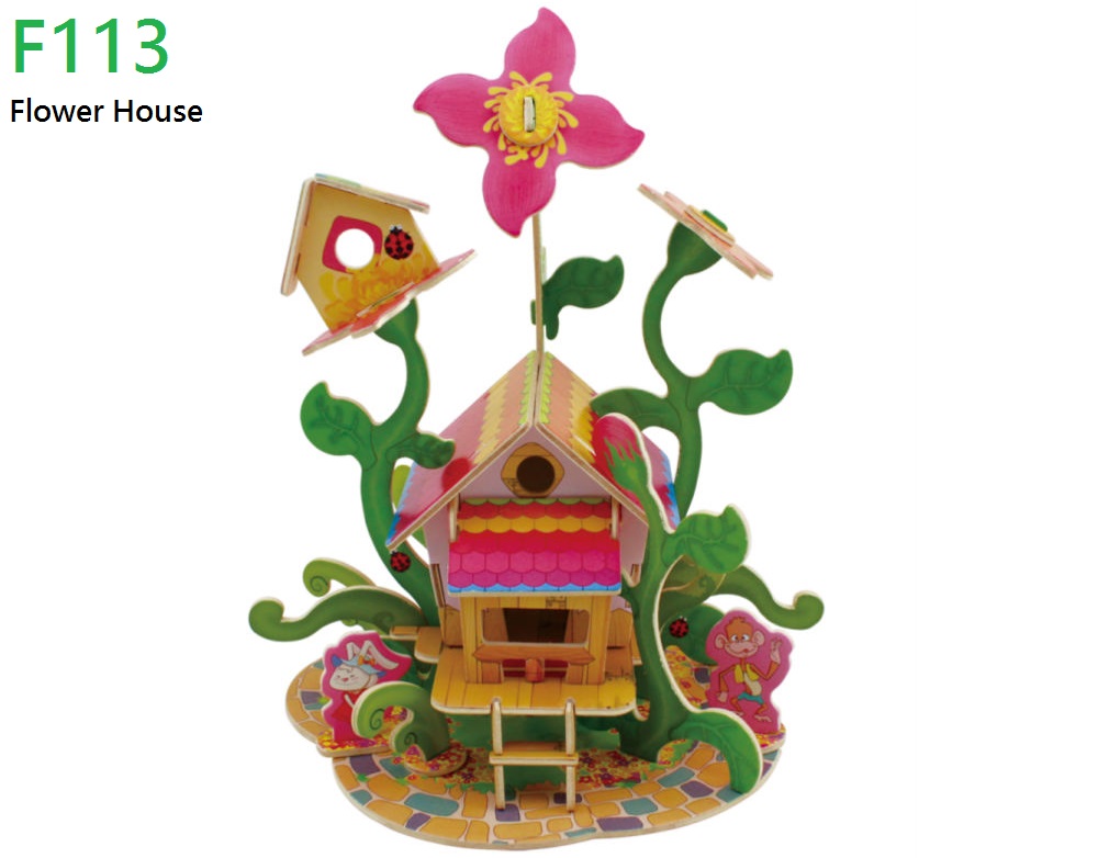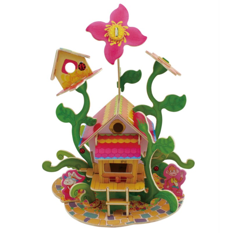 Flower House Forest Cabin - Puzzle 3D din lemn
