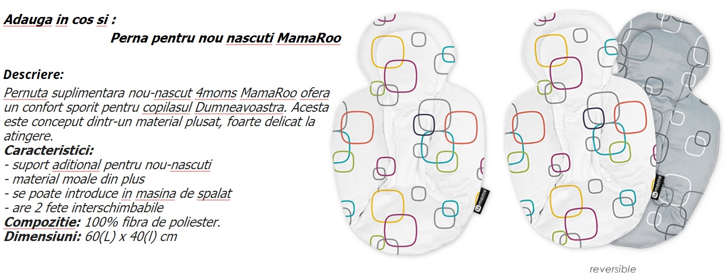 Fotoliul balansoar mamaRoo 4.0 este conceput sa se legene la fel cum o mamica isi leagana copilul in brate. Acesta dispune de cinci miscari unice si cinci optiuni de viteza, avand un total de 25 de combinatii diferite. Fotoliul-balansoar MamaRoo 4.0 este un sistem complet permitandu-i copilului sa se întinda, sa se relaxeze si sa se joace.