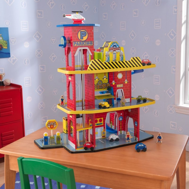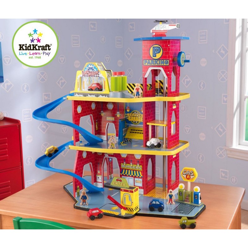 Garaj etajat 4 nivele - Deluxe Garage Play Set Kidkraft set de joaca din lemn pentru copii