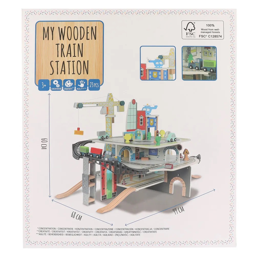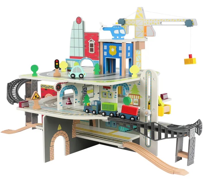 Setul Train Statioeste un set complex de joaca cu masinute si trenulete cu magazine, statie de politie cu usa basculanta, tunele , serpentine si multe altele.