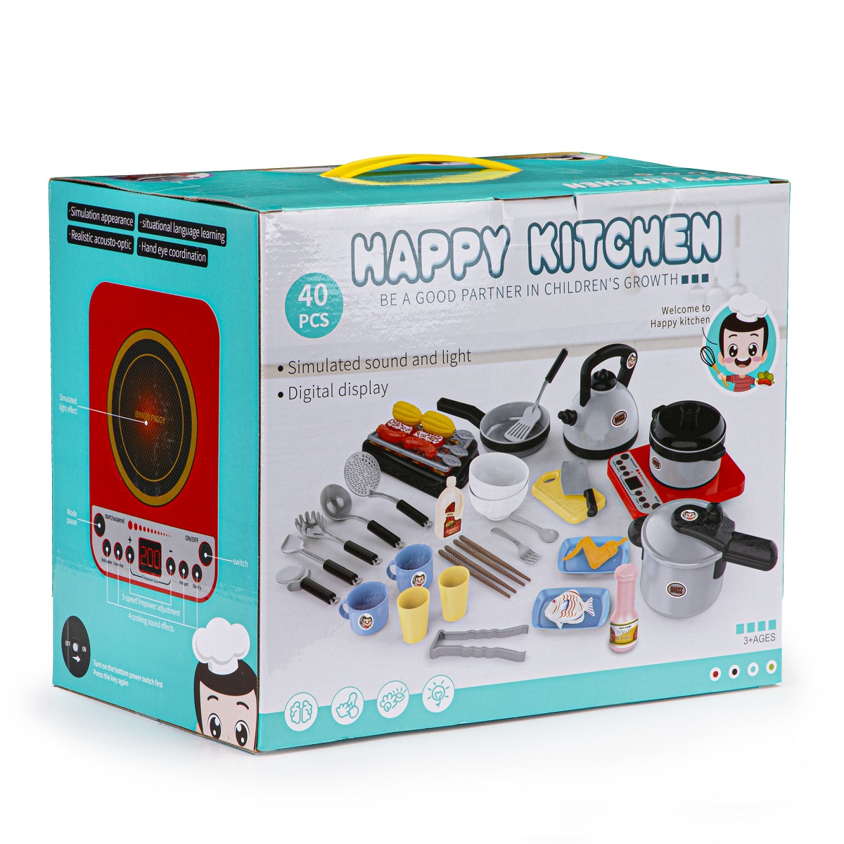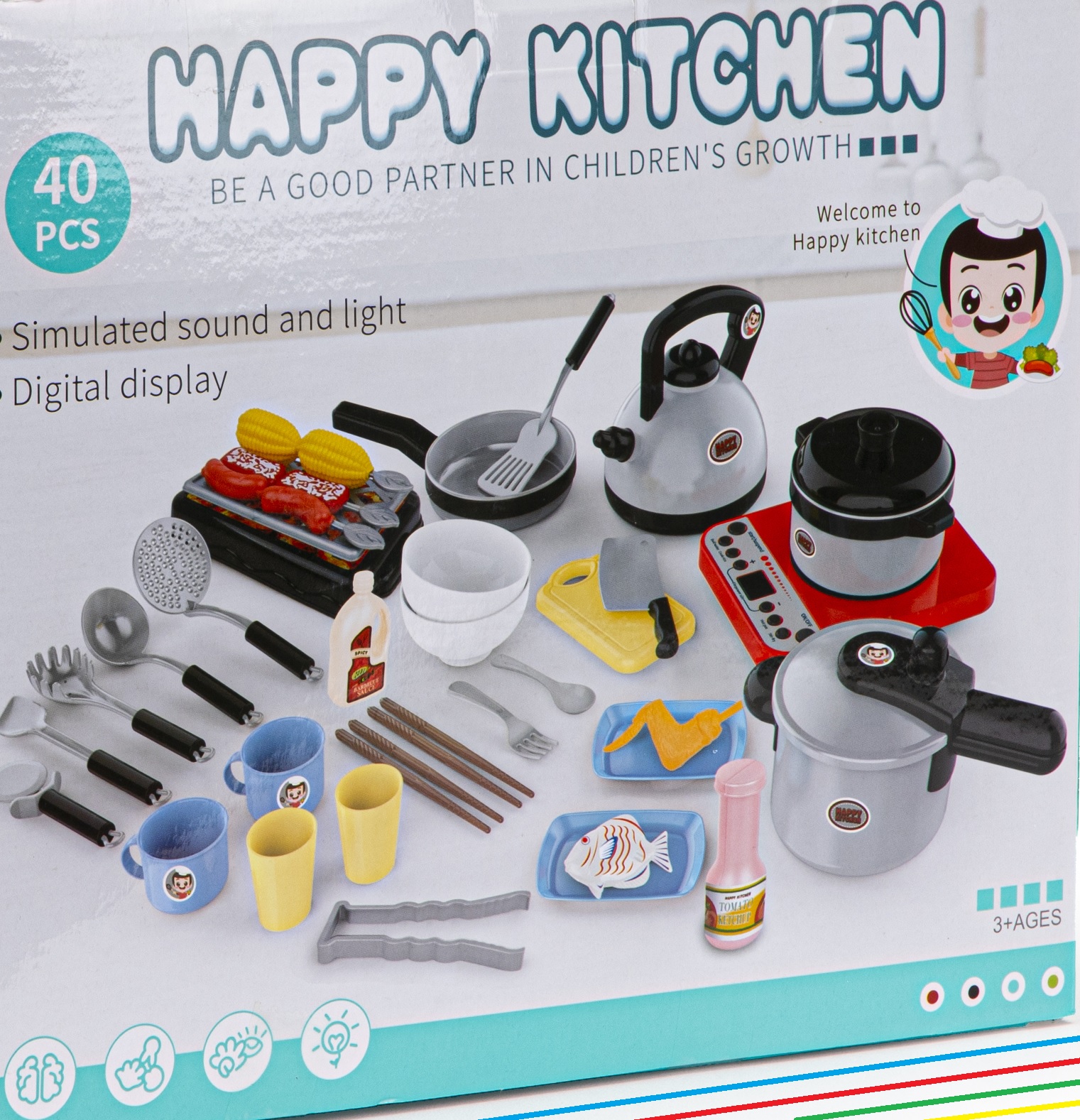 Produs: Set pentru Gratar si Barbecue cu Lumini LED si Sunete - Happy Kitchen cu 40 accesorii de jucarie pentru bucatarie copii