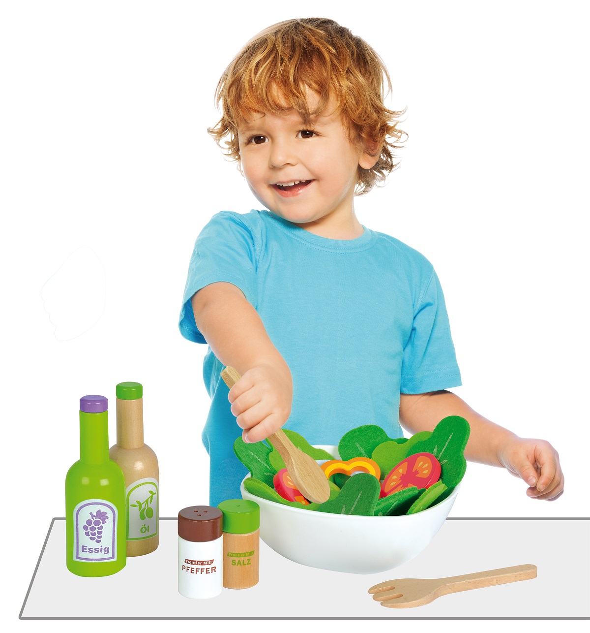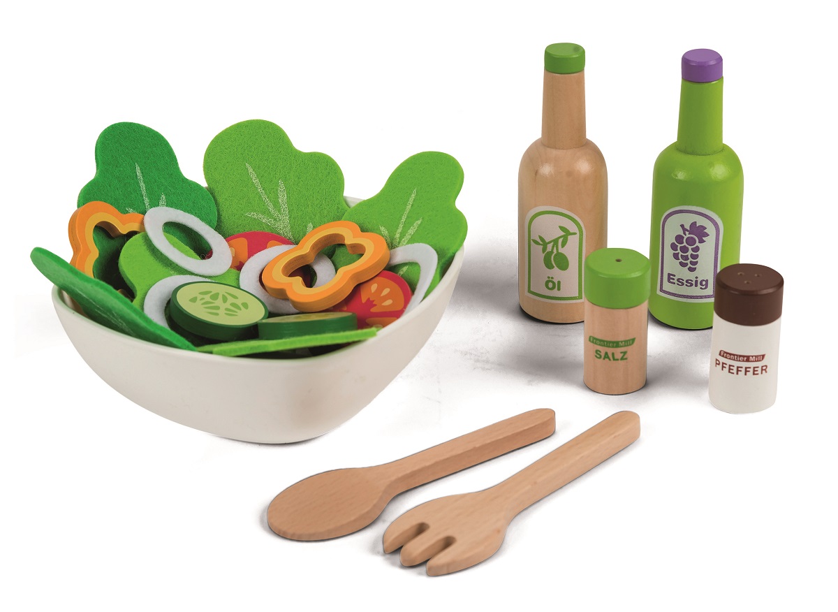 Un set de salate din lemn este o jucărie minunată pentru copiii cărora le place să lucreze în bucătărie.