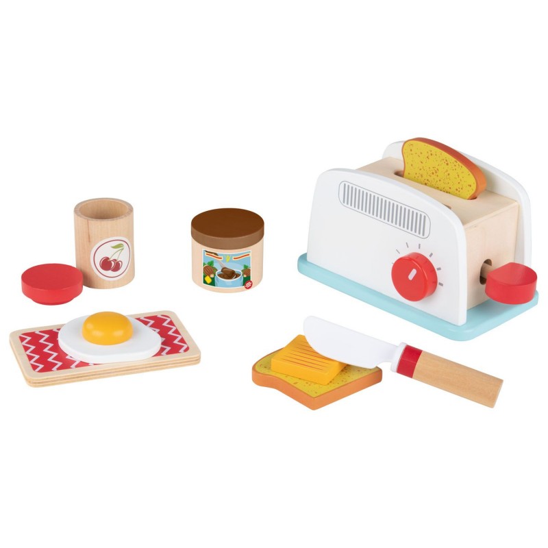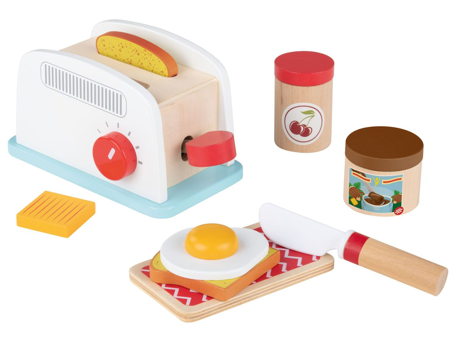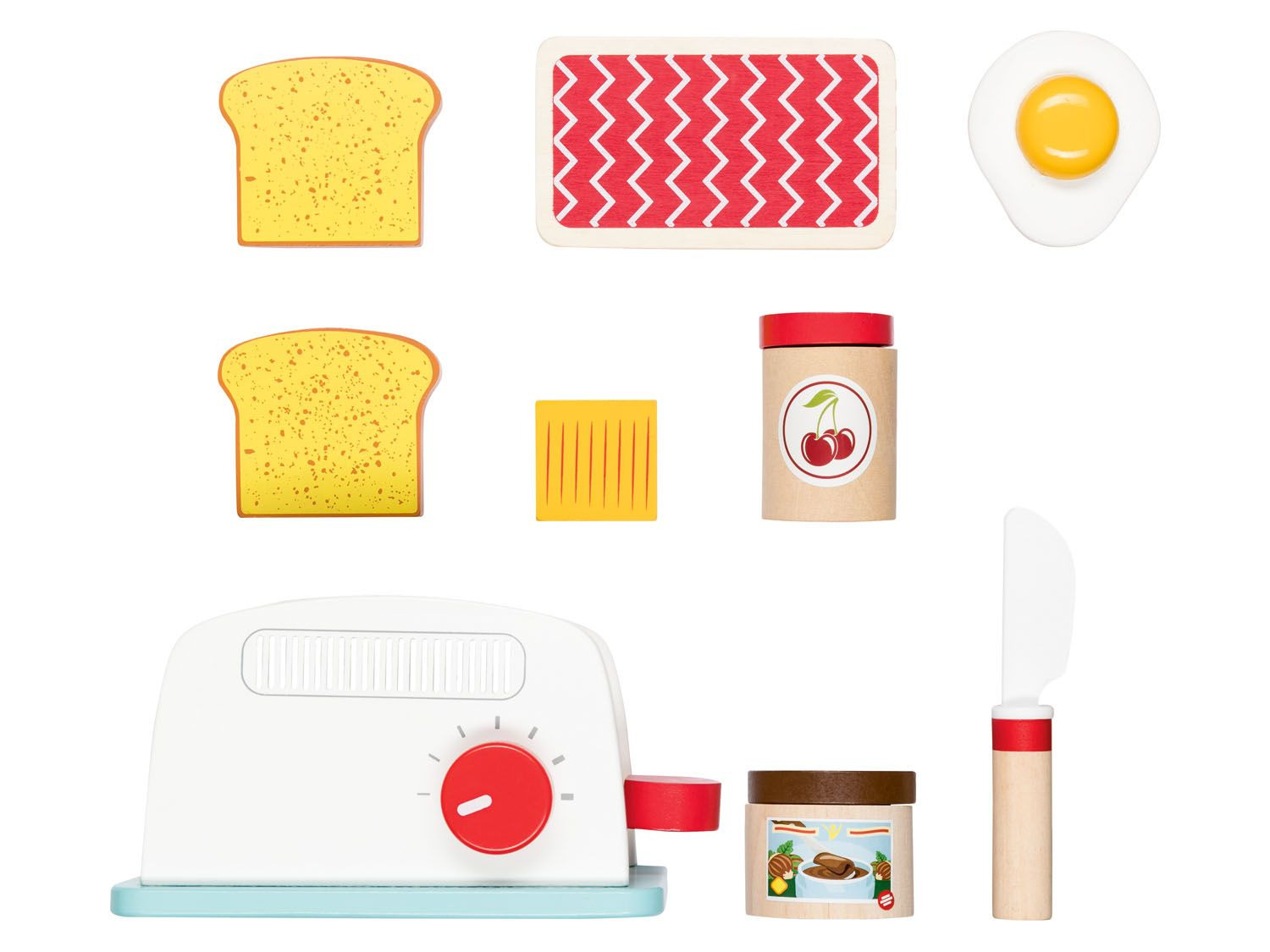 Produs: Set mic dejun de jucarie Toaster din lemn cu accesorii - Prajitor de paine pentru copii