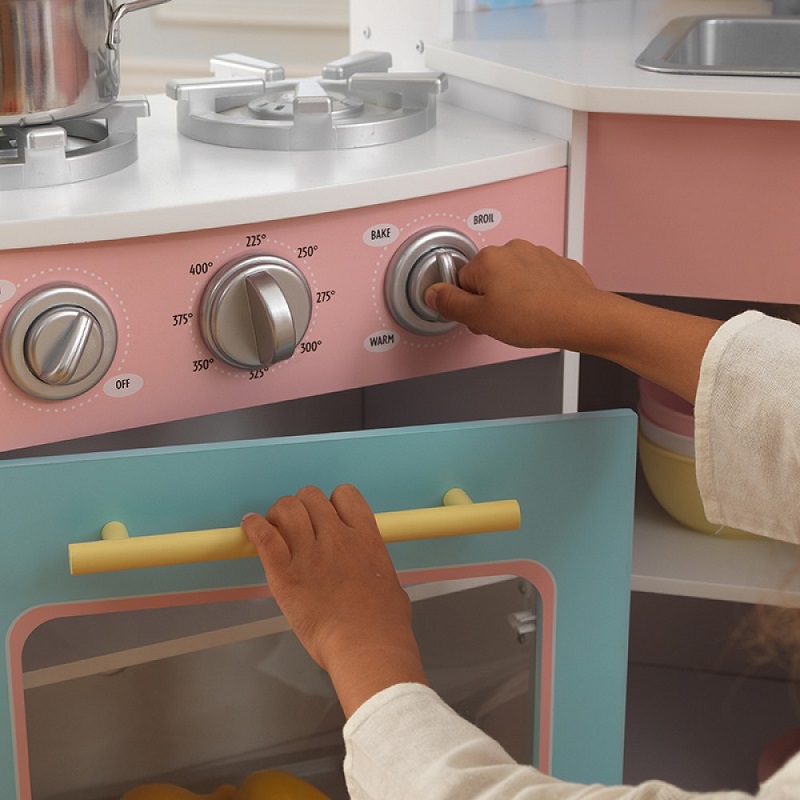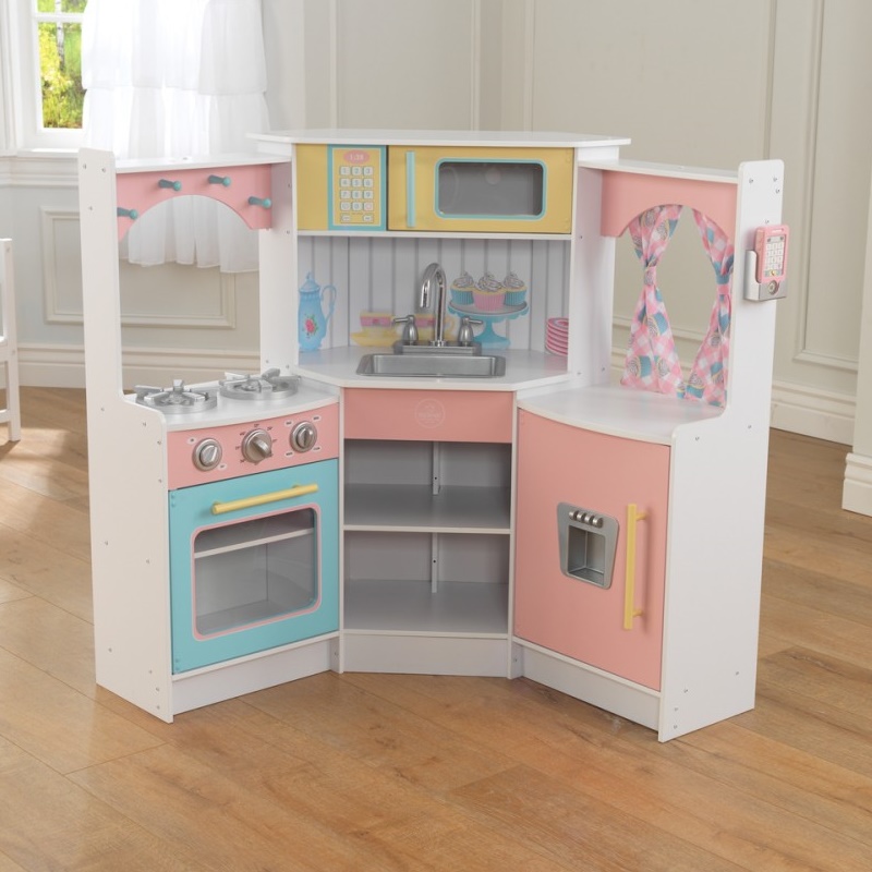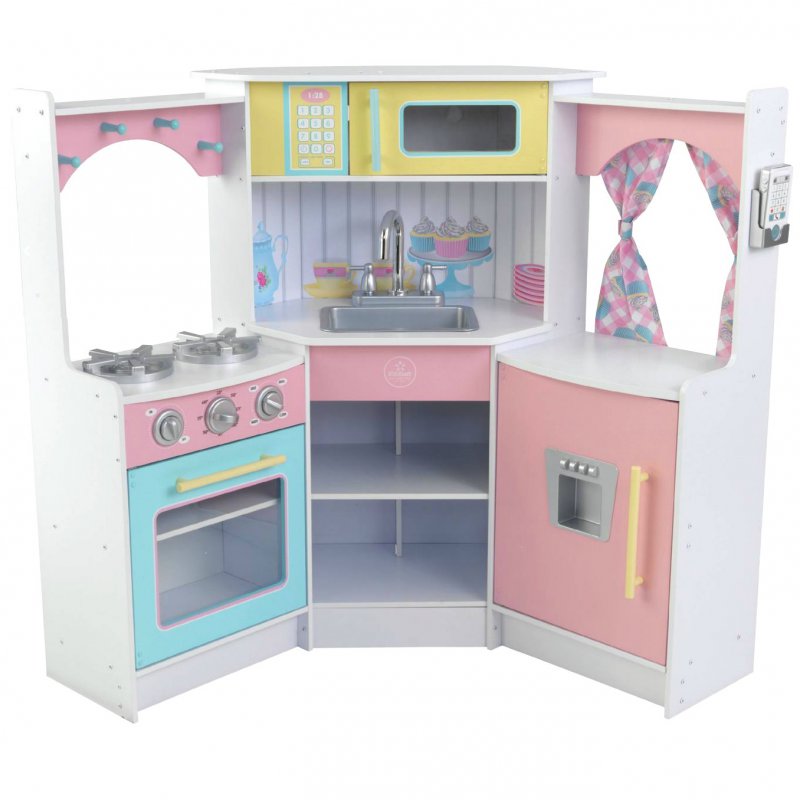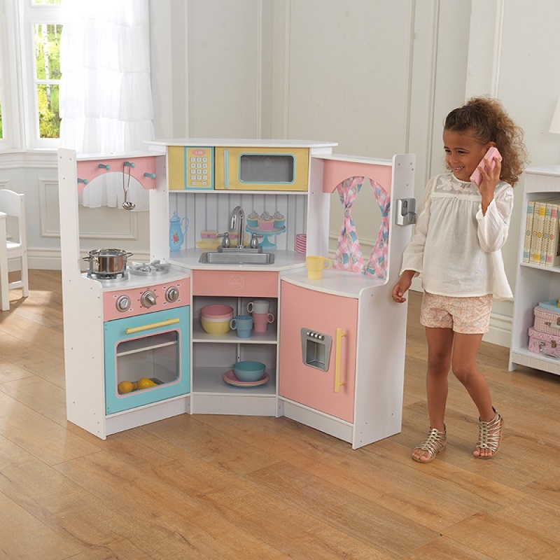 Bucataria Deluxe Corner Kidkraft este o bucatarie din lemn plina de detalii grozave, amuzante pentru copii, inspirate din bucatariile reale. Bucataria are un aspect modern si elegant.