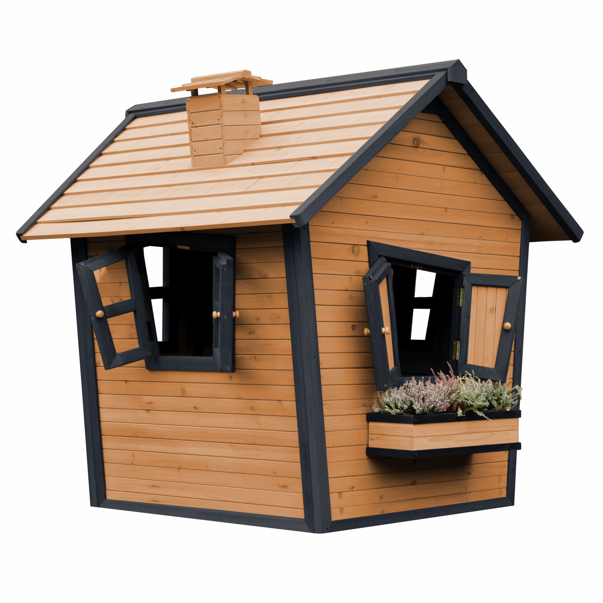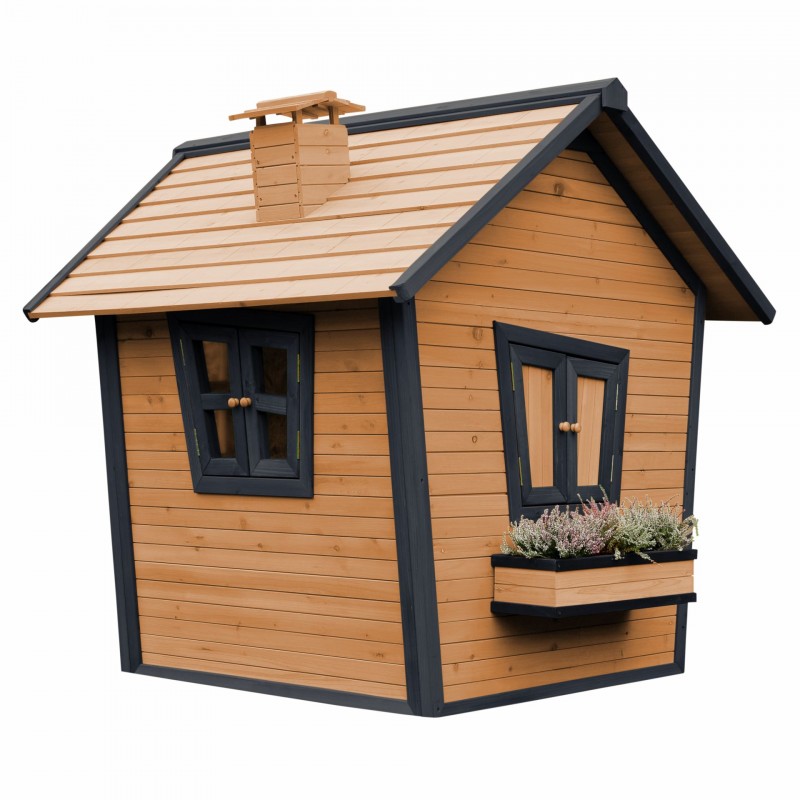 Casuta de joaca Alice in WonderWorld pentru copii din lemn Maro-Antracit- Casa gradina cu geamuri din plexiglas AXI