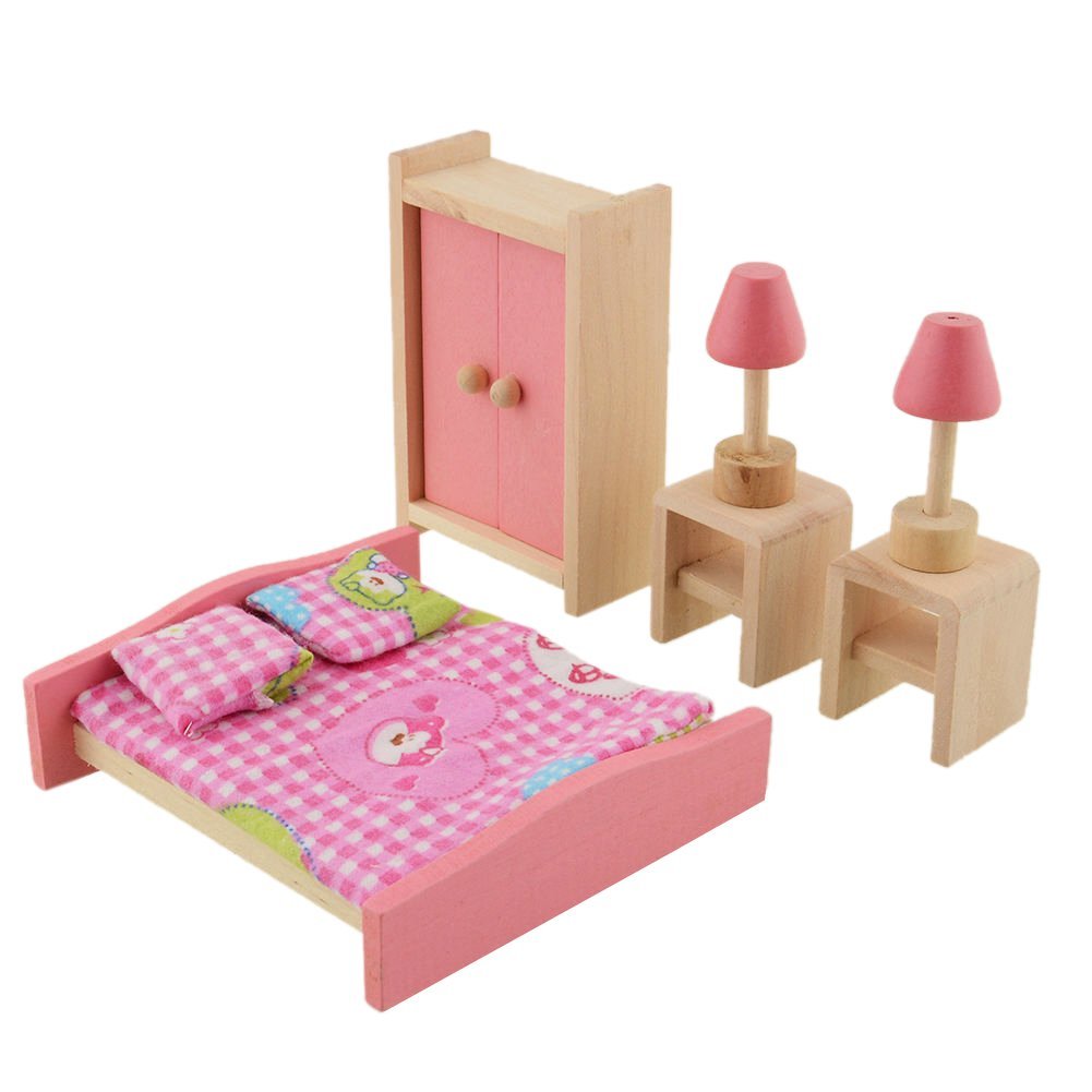 Set mobilier din lemn Dormitor pentru casute de papusi - Bedroom
