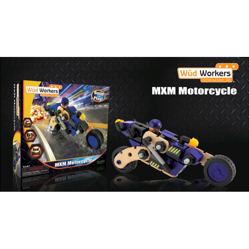 P R O D U S:   Kit asamblare Motocicleta din lemn MAXIM  -Set 65 piese Build and Play