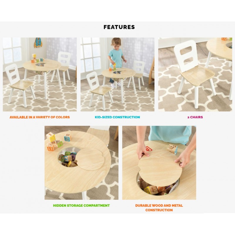Masuta rotunda Alb - Maro Natur cu doua scaunele si spatiu de depozitare- Round Table Kidkraft