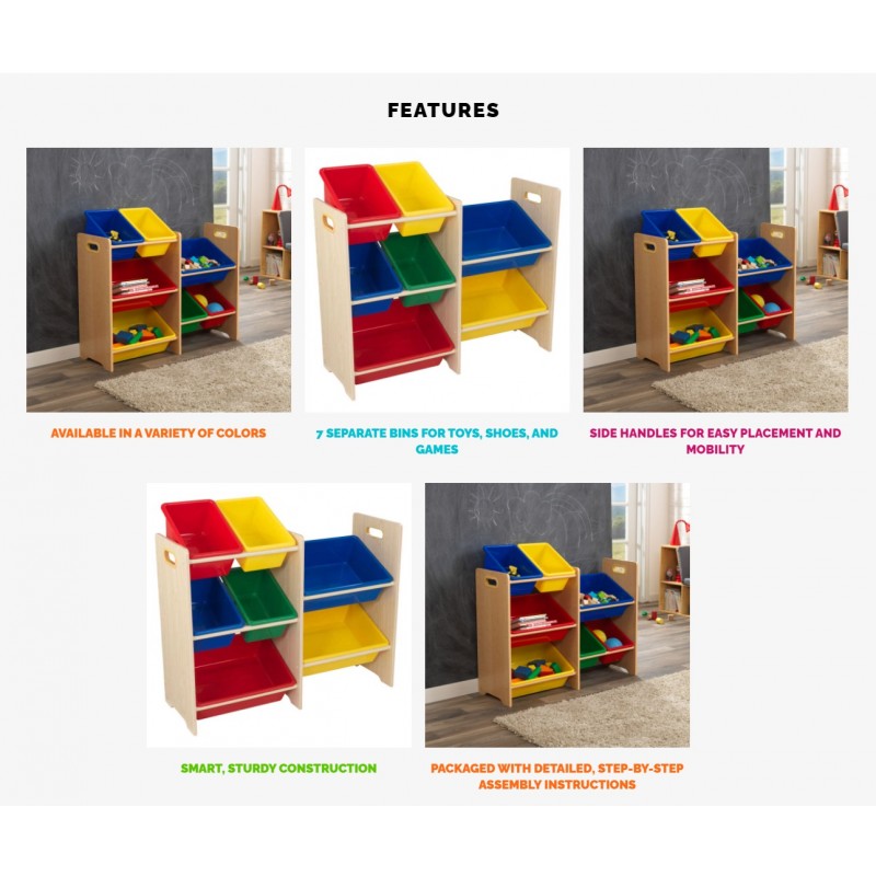 Organizator Kidkarft cu stocare in 7 Recipiente Maro - Spatiu depozitare Jucarii -Toy Storage Natural Primary