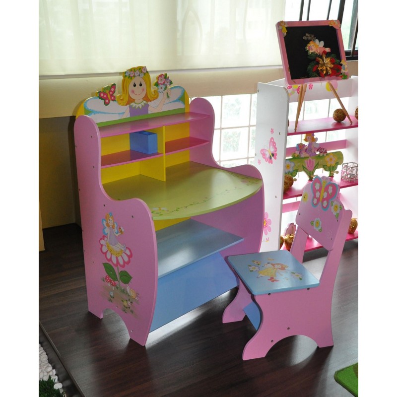 Birou copii cu etajera Fairy si scaunel cu spatar din lemn MDF Liberty House Toys OnlyToys