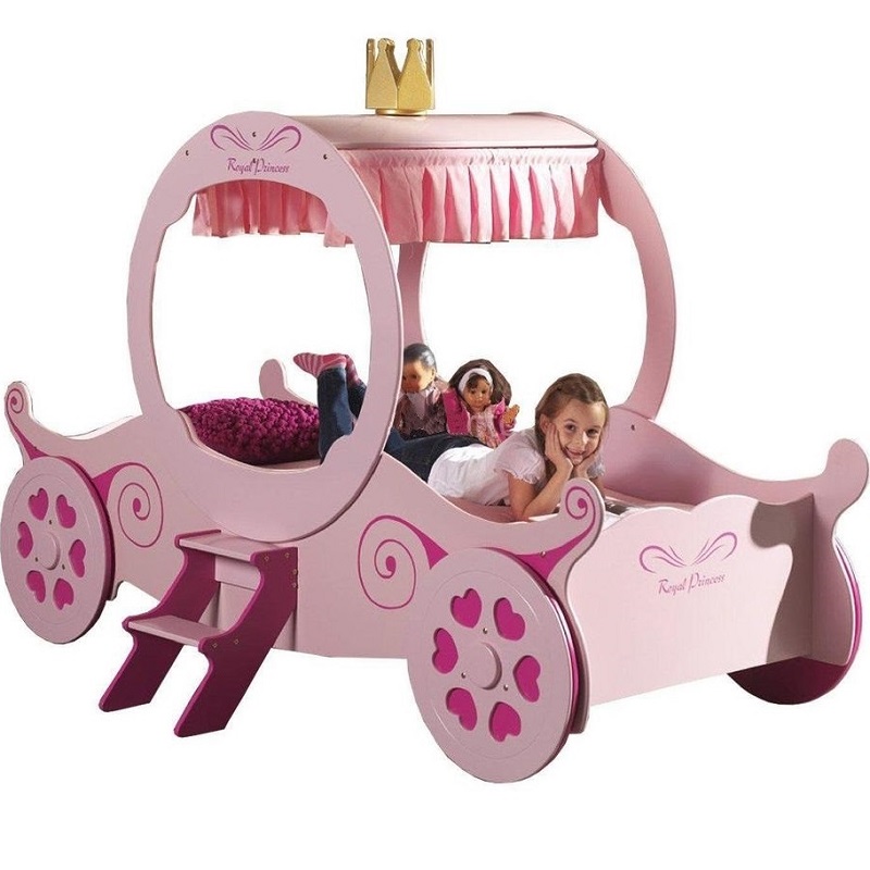 Produs: Pat Printese Royal Princess Carriage ROZ - Pat Caleasca din lemn MDF in forma de Trasura Regala