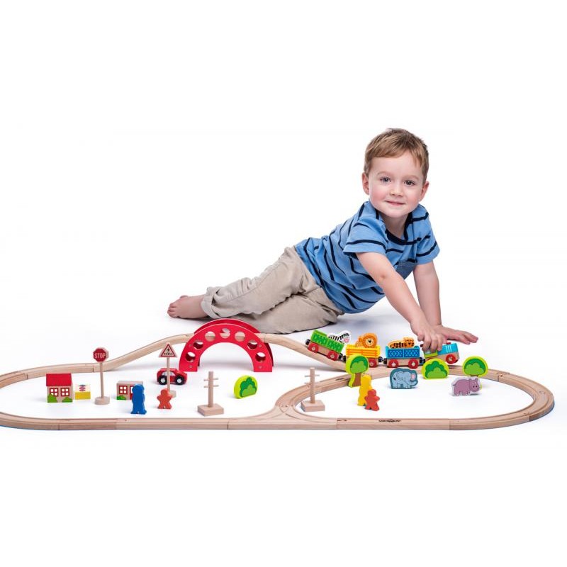 Set Trenulete Animal Zoo Train – Trenulet Gradina cu animale Set din lemn de 118 cm cu 60 piese sine si accesorii