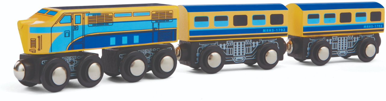 Folosind trenul de Pasageri Imaginarium puteți economisi o mulțime de timp. Iar privirea lui pe șine este o mare paradă. Acest tren cu locomotive la ambele capete va ajunge la destinație și înapoi și nu va trebui niciodată să se rotească. Locomotivele pot trage, de asemenea, diferite tipuri de vagoane.