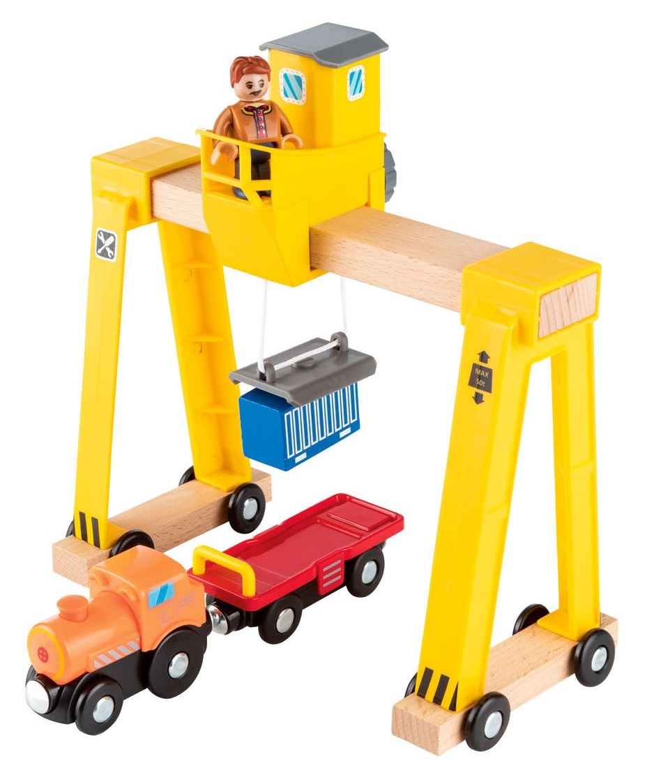 Transbordarea mărfurilor la stația de marfă poate fi foarte distractivă, plus acest cursor de jucărie este o jucărie. Nici o gară nu poate face fără o astfel de macara și toată lumea ar vrea să o încerce. Maxim poate fi combinat cu toate celelalte trenuri de tren din lemn de pe piață. Potrivit pentru copiii de la 3 ani, conține piese mici.