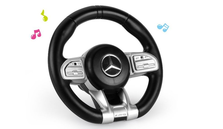 VOLAN MULTIFUNCȚIONALVolanul are butoane care activează claxonul, melodiile și LED-urile din luminile din față. Forma volanului seamănă cu cele reale găsite în mașinile sport, este special profilată astfel încât un șofer mic să o poată ține ferm. | |