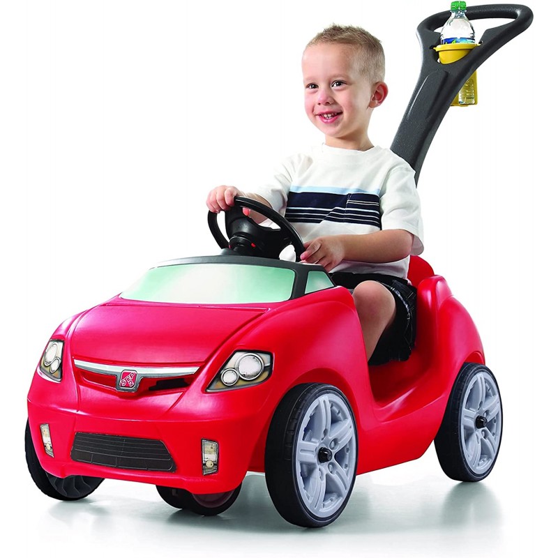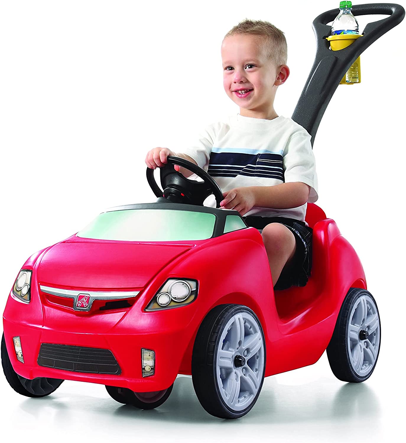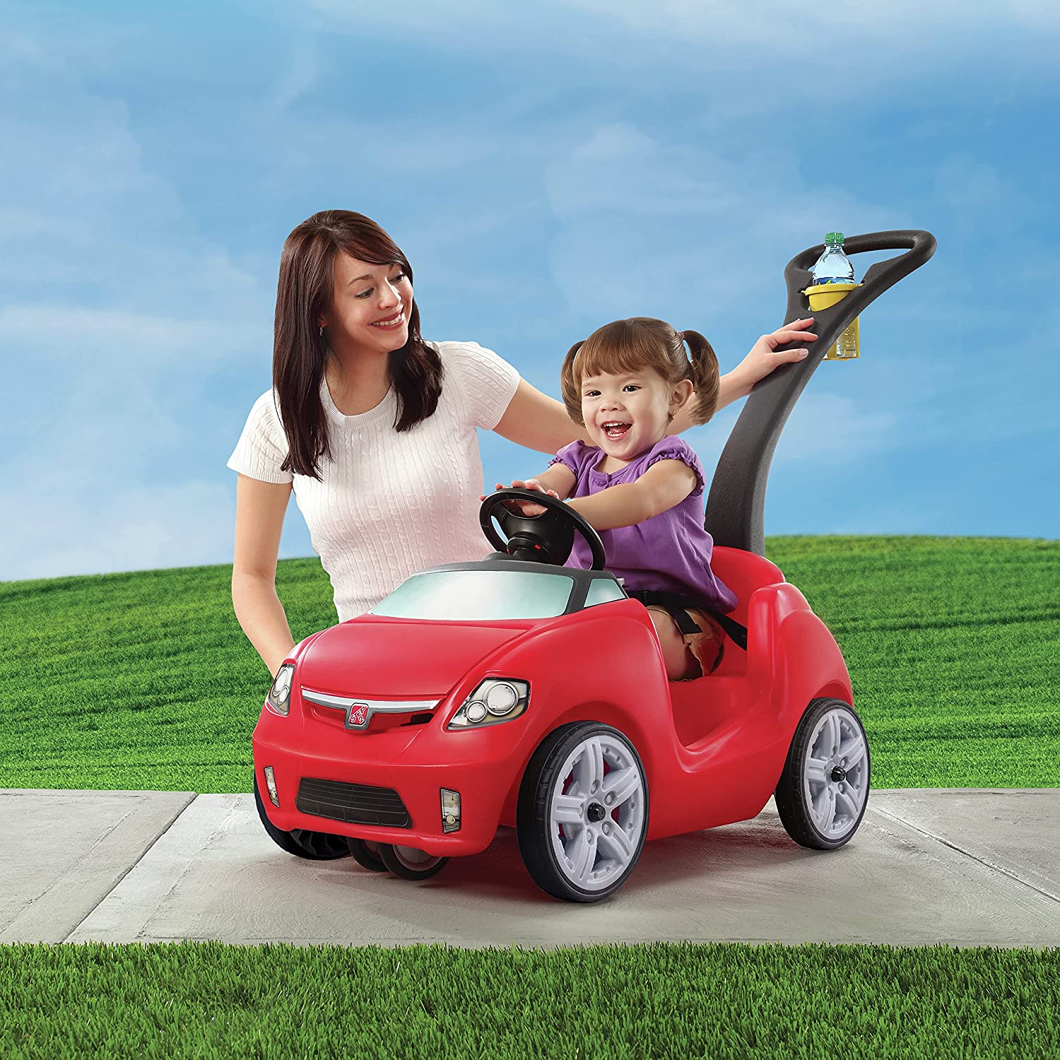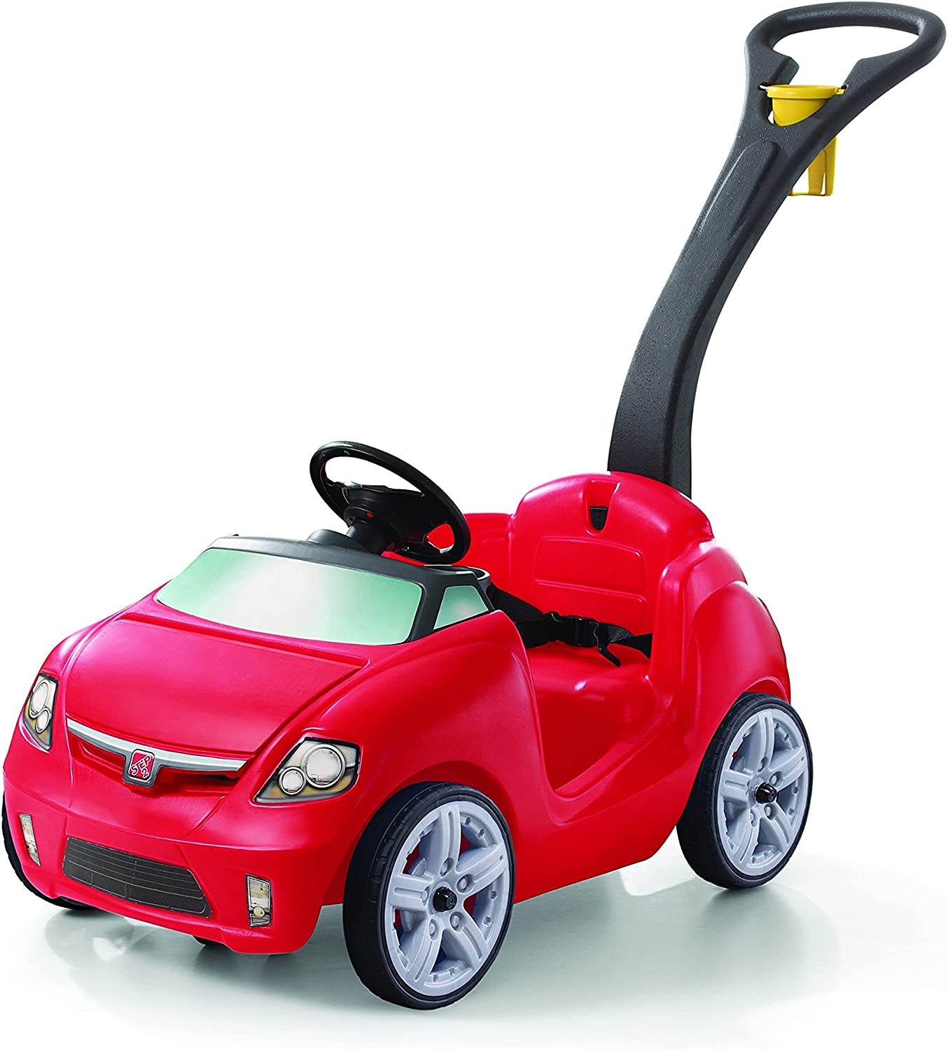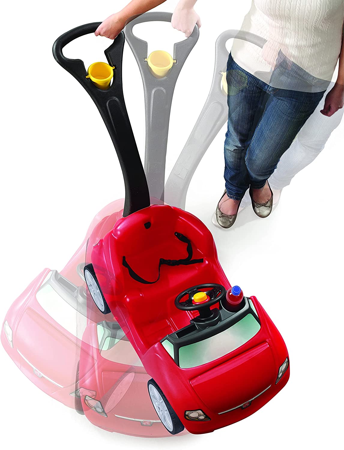 Luați această mașină elegantă de jucărie pentru copii la o plimbare cu micuțul dvs.! Se vor distra de minune cu Easy Steer Sportster™ pretinzând că își conduc propria mașină sport cu volanul mobil și claxonul funcțional. Ești gata pentru o plimbare sportivă? Prinde-ți centura de siguranță inclusă și folosește suporturile pentru pahare pentru a împacheta niște băuturi. Deschideți capota pentru a trage în jos roata, pentru a face viriturile de 360 de grade o briză! Când există un teren uniform și neted, trageți cu ușurință roata în sus și în afara drumului și închideți capota. Această mașină rulantă pentru copii mici dispune de Whisper Wheels™ pentru reducerea zgomotului de pe drum, împreună cu un mâner ușor de pliat pentru transport și depozitare fără efort oriunde duce următoarea aventură. Fabricat în SUA din SUA și piese importate.