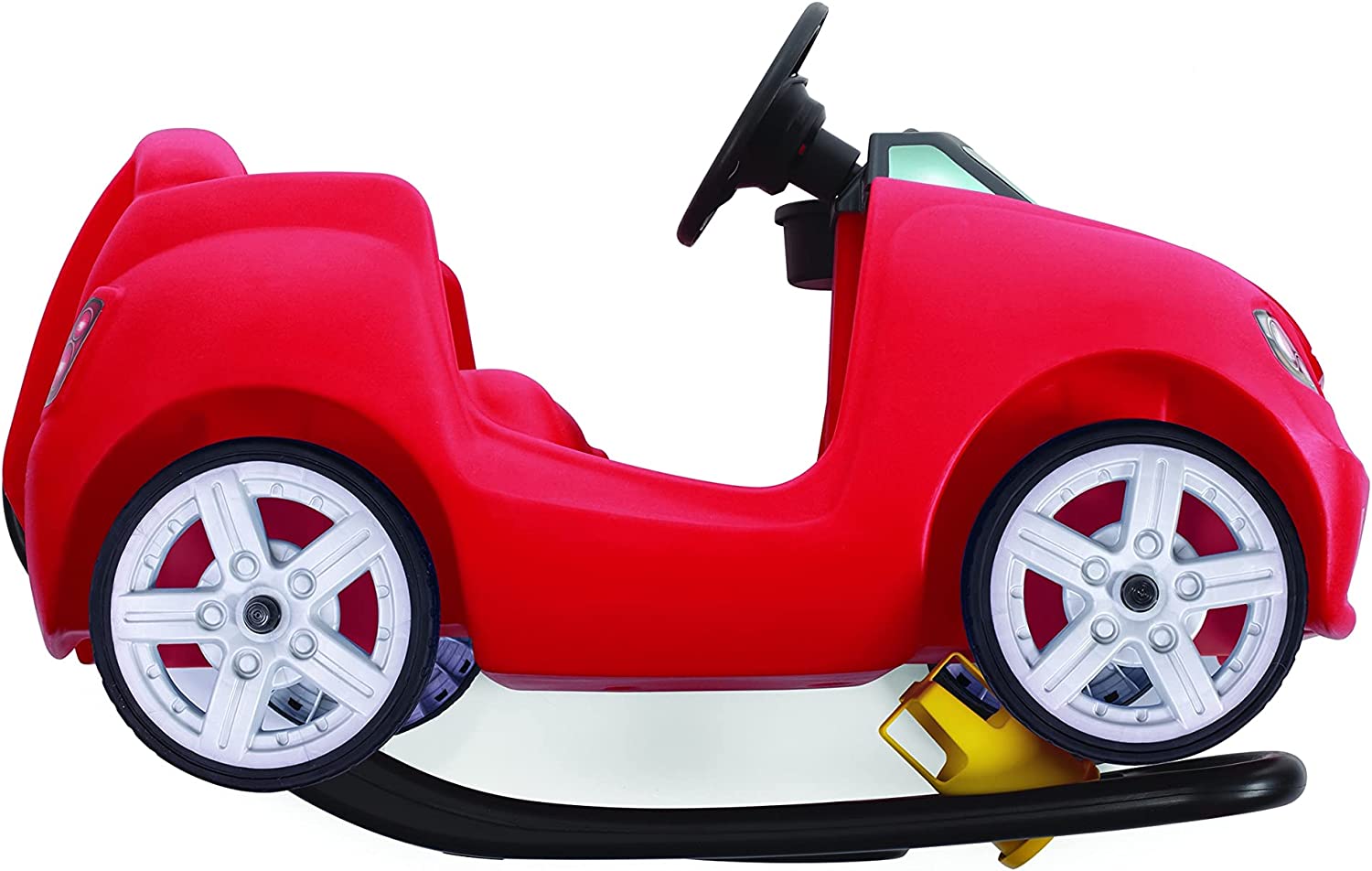 Mașină de jucărie, roți, volan cu claxon, centură de siguranță și mâner ușor de depozitat.
