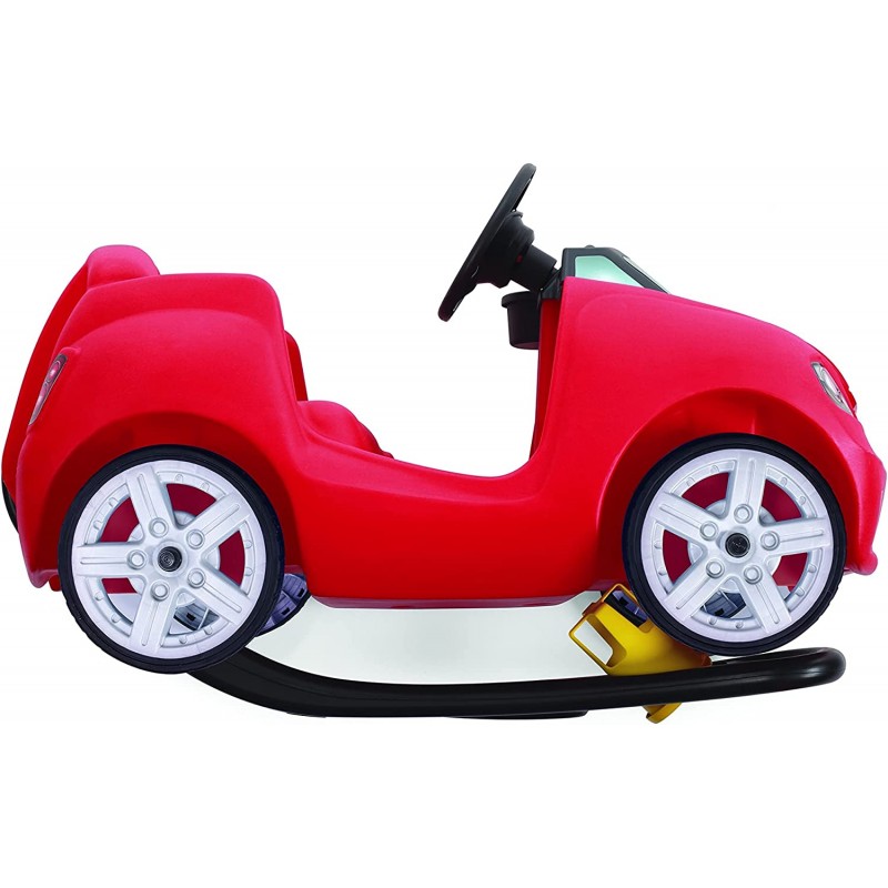 Jucăria pentru călăreț pentru copii are un aspect elegant și realist de mașină sport și un volan pretins cu claxon de lucru.