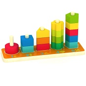 Are doua sertare integrate sub masuta, pentru jocul de sortare si pentru stocarea pieselor din lemn