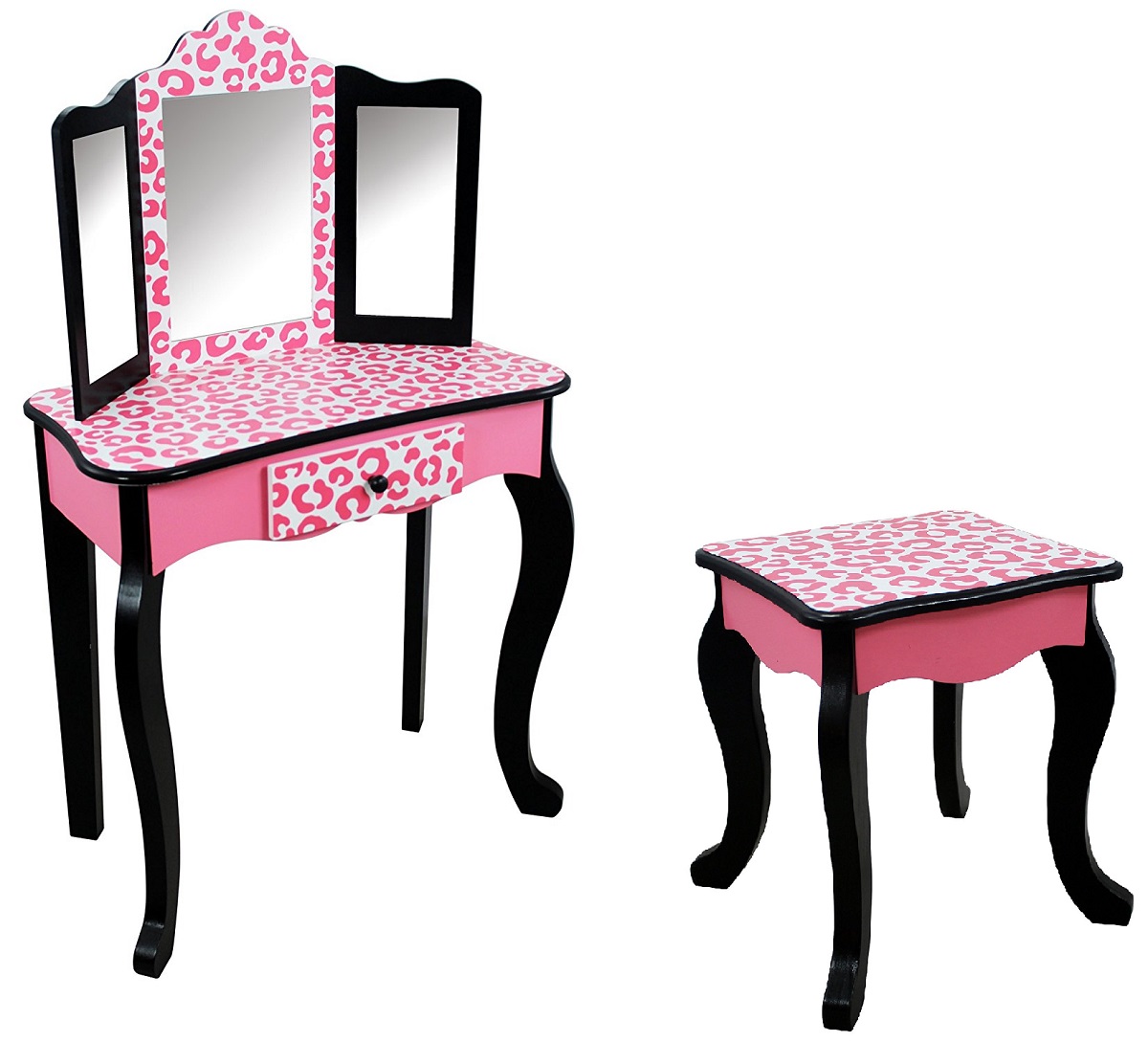 Masuta de toaleta copii cu 3 oglinzi, sertar si scaun ROZ- Vanity Table and Stool