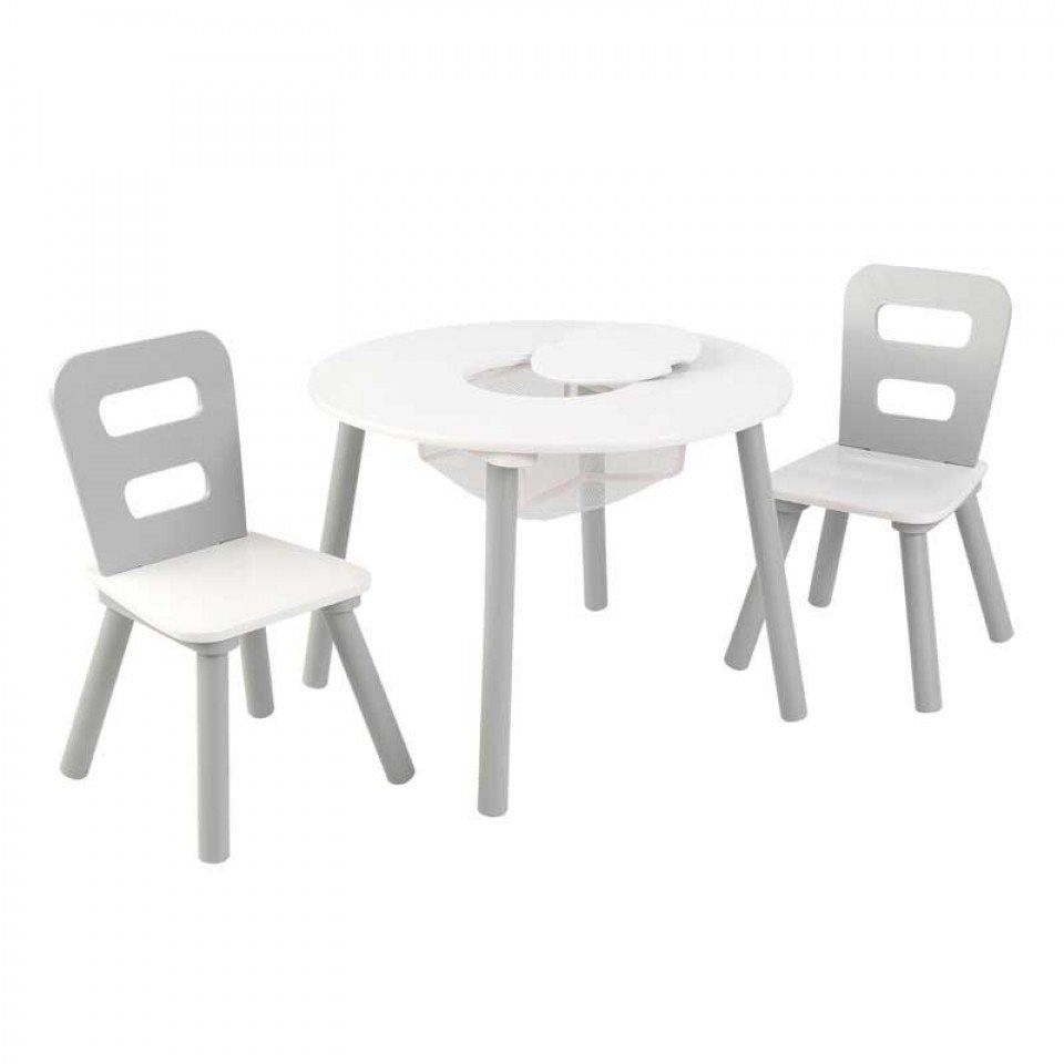 Masuta rotunda Gri cu doua scaunele si spatiu de depozitare- Grey Round Table Kidkraft