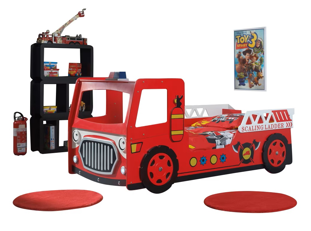 Patutul in forma de masina de pompieri recomandat copiilor cu varste intre 3 si 14 ani, este un obiect de mobilier modern si creativ, al carui design si forma atractiva face ca cei mici sa renunte usor la patutul de bebelusi.