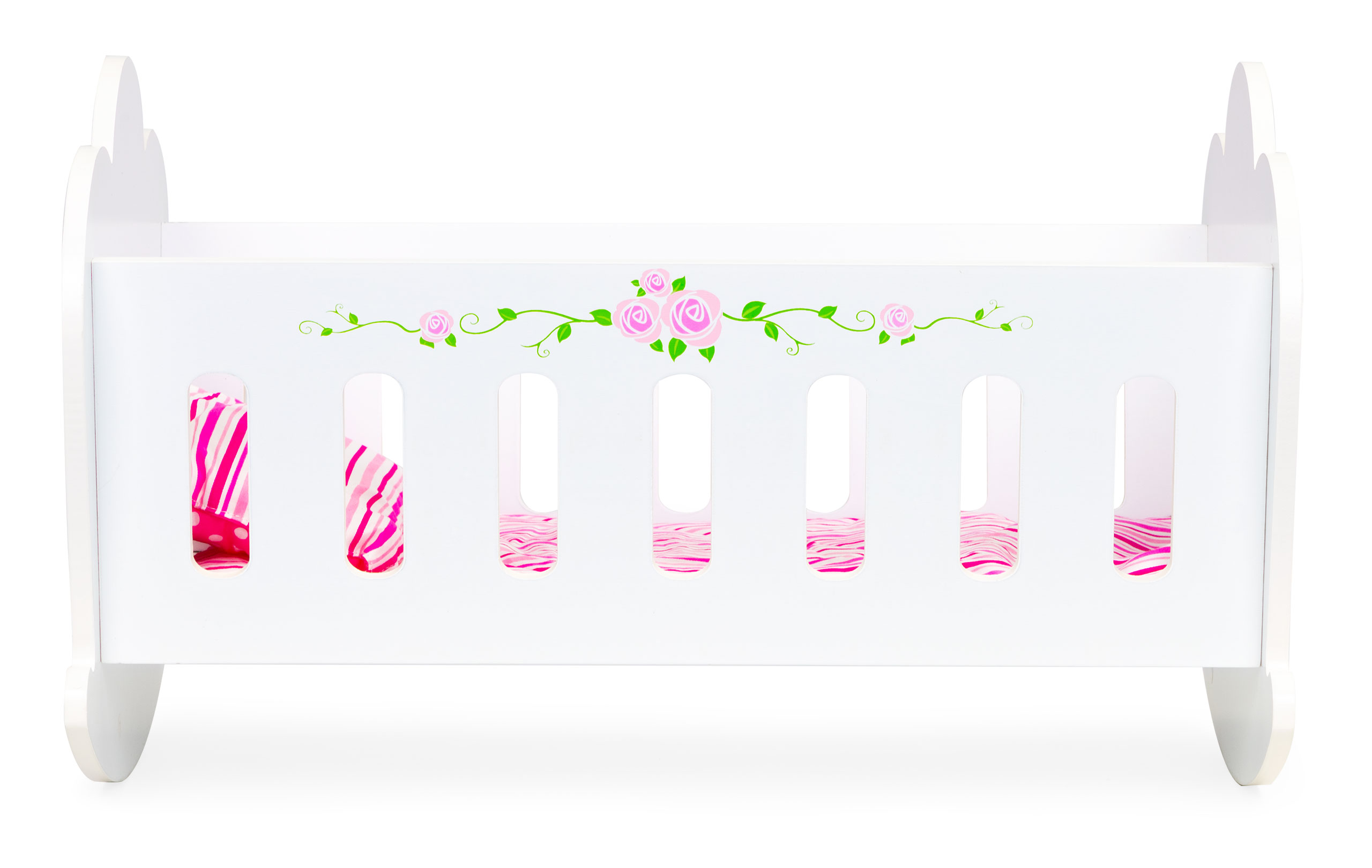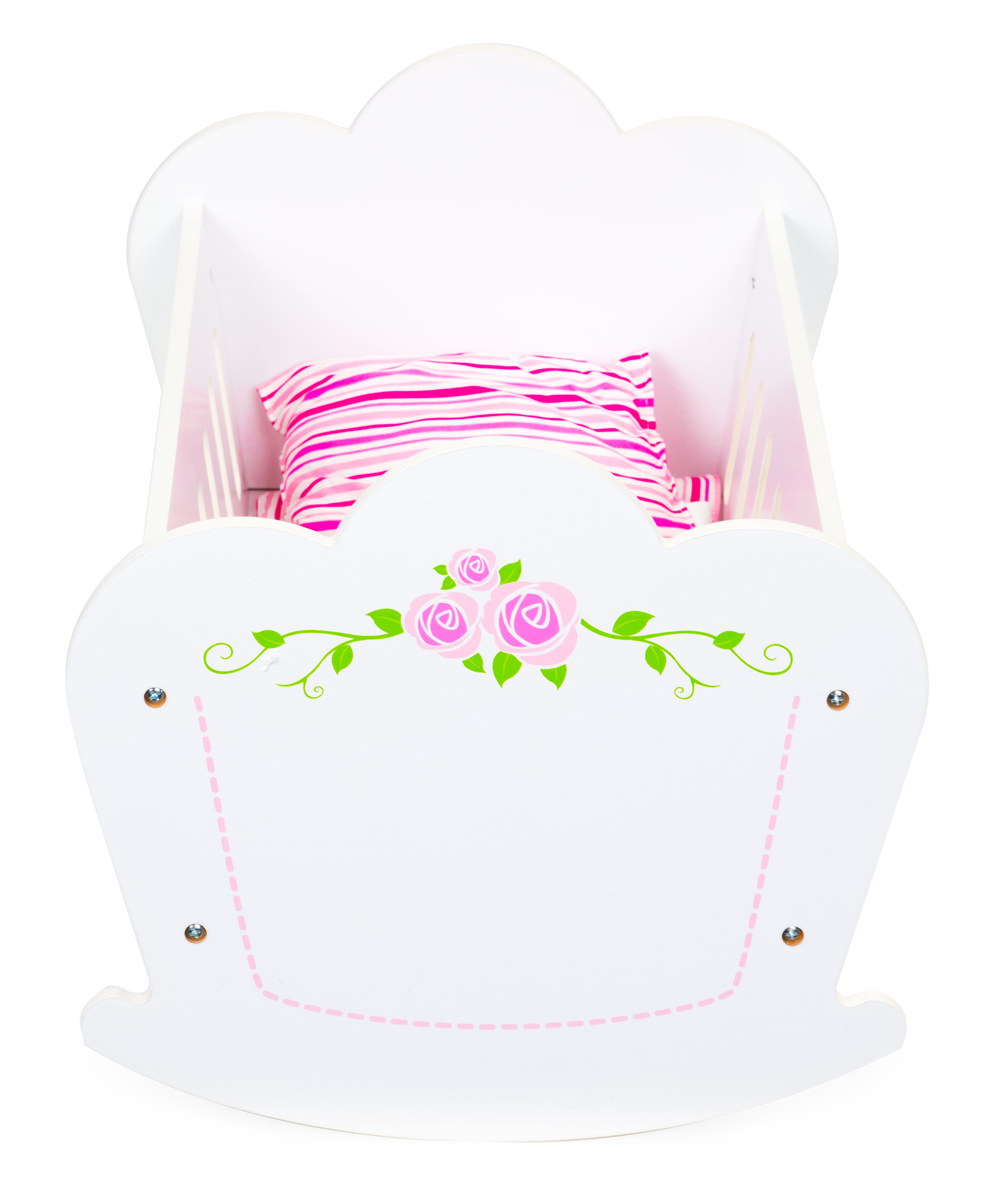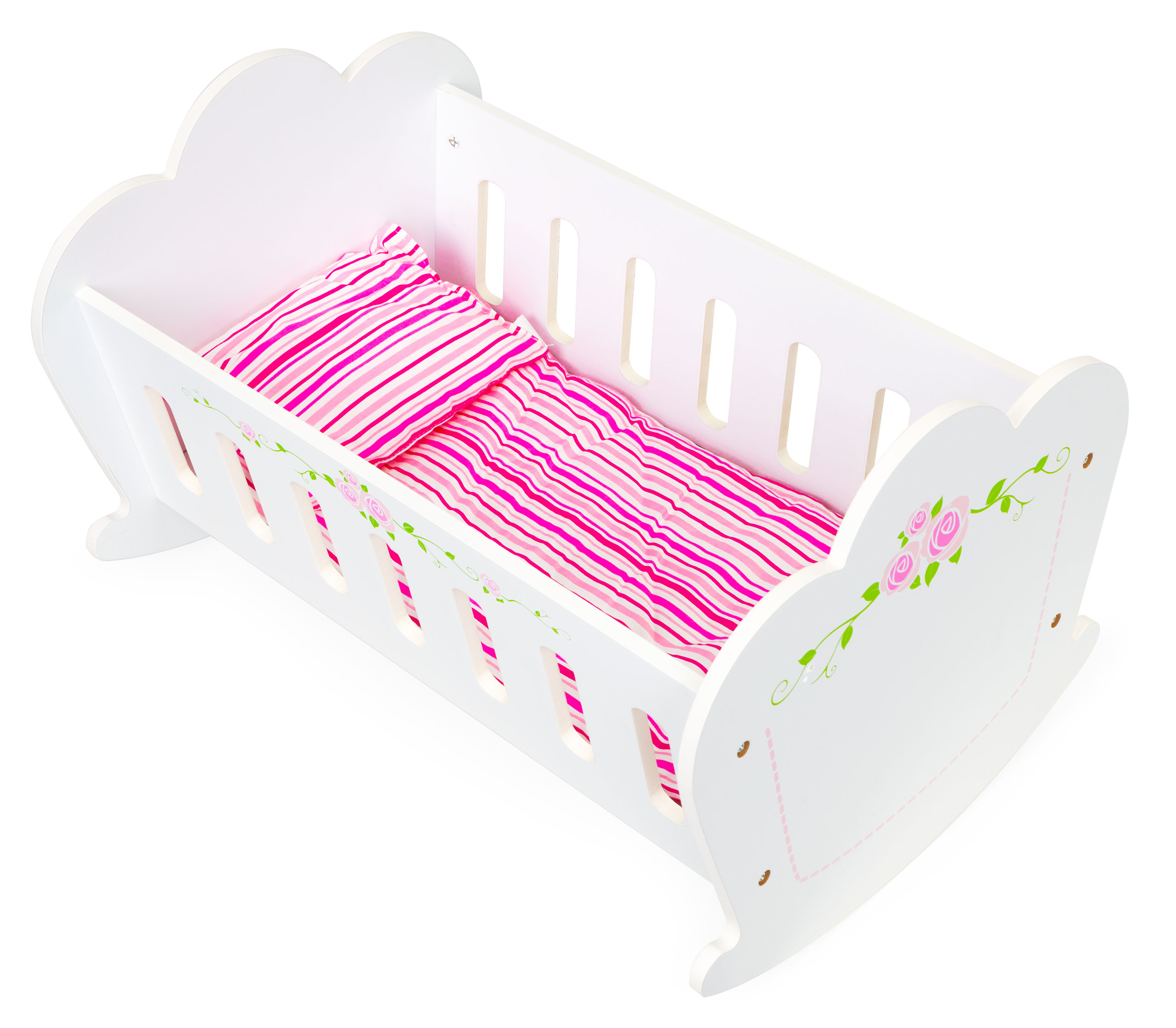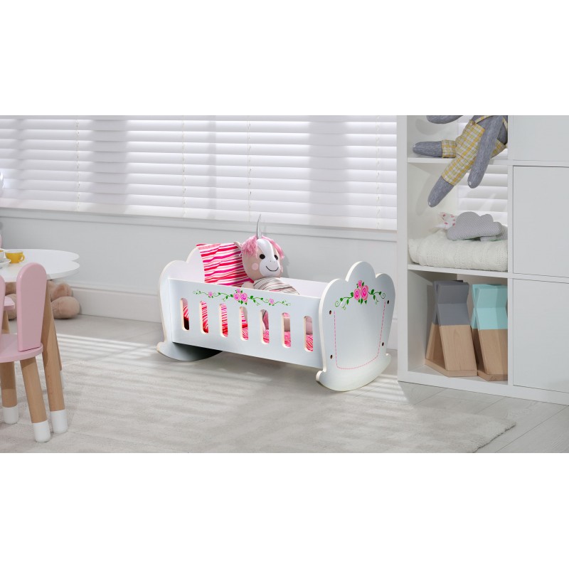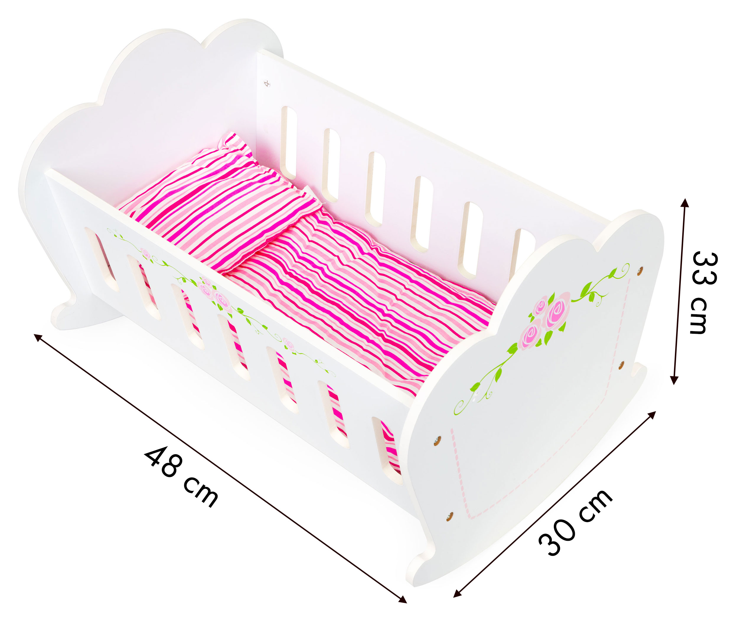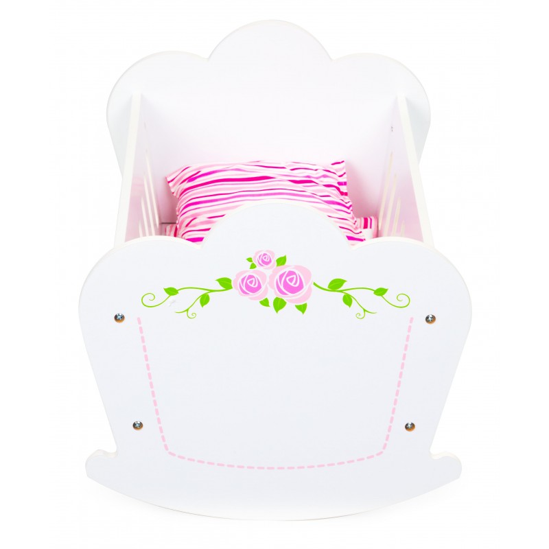 Patut Alb cu balans pentru papusi cu lenjerie -Patut balansoar din lemn