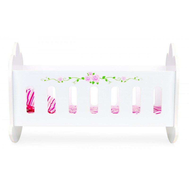 P r o d u s: Patut Alb cu balans pentru papusi cu lenjerie -Patut balansoar din lemn