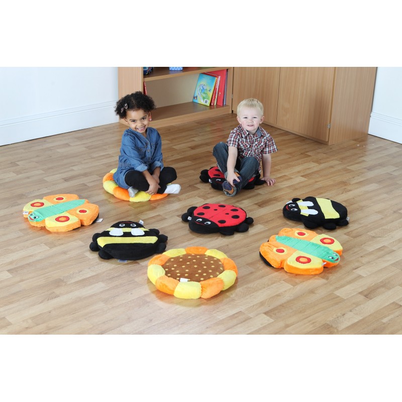 O gamă premium de perne de podea viu colorate, cu modele decorate 3D cu alibunte, fluturas, buburuze si floarea soarelului