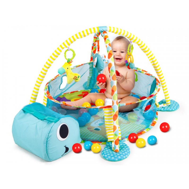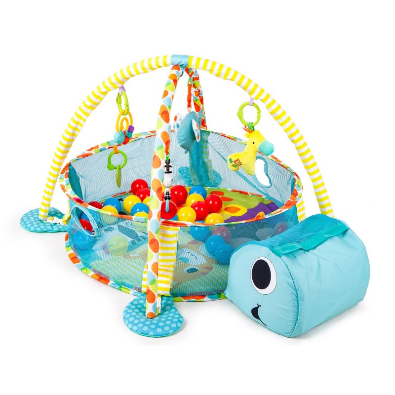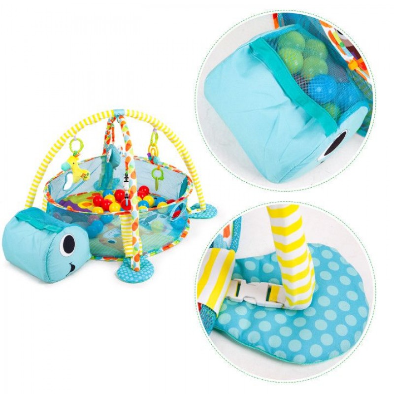 Capul broaștei țestoase servește drept ascunzătoare pentru bile colorate, setul cu covor include 30 de bile care vor face distracția tuturor celor mici mai plăcută.