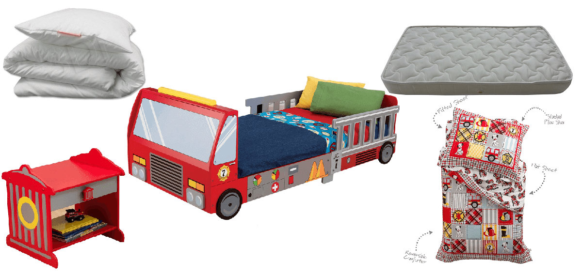 Setul de mobilier dormitor Fire Truck Kidkraft contine: