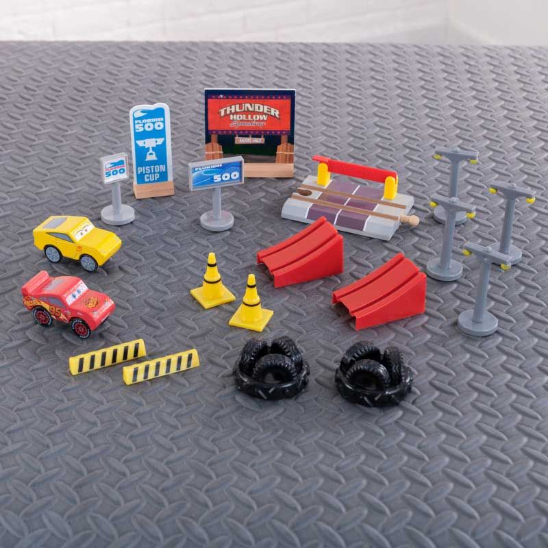 Acest set include mai mult de 50 de piese și decoruri, împreună cu Lightning McQueen și Cruz Ramirez.