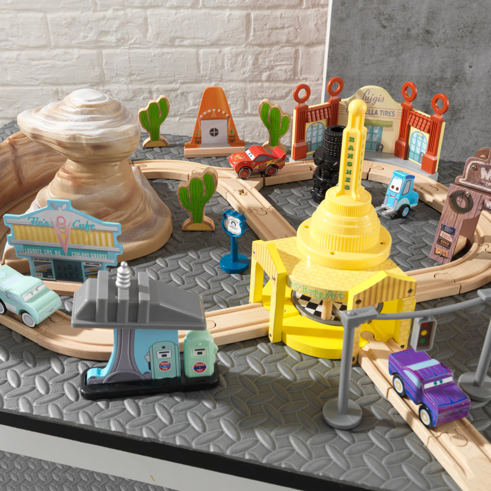 Acest set recreează celebrul oraș Radiator Springs și include piste din lemn, clădiri și personaje îndrăgite din universul Disney Pixar. Copiii pot crea propriile curse și povești, dezvoltând imaginația și abilitățile motorii.
