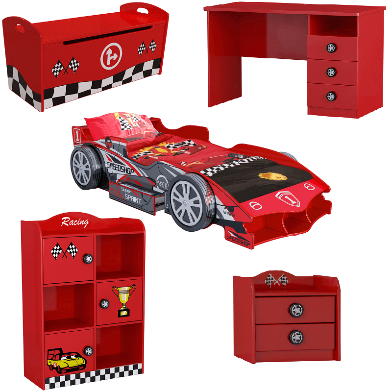 Set Formula 1 Car -5 piese (pat,noptiera, biblioteca, banca, birou)
