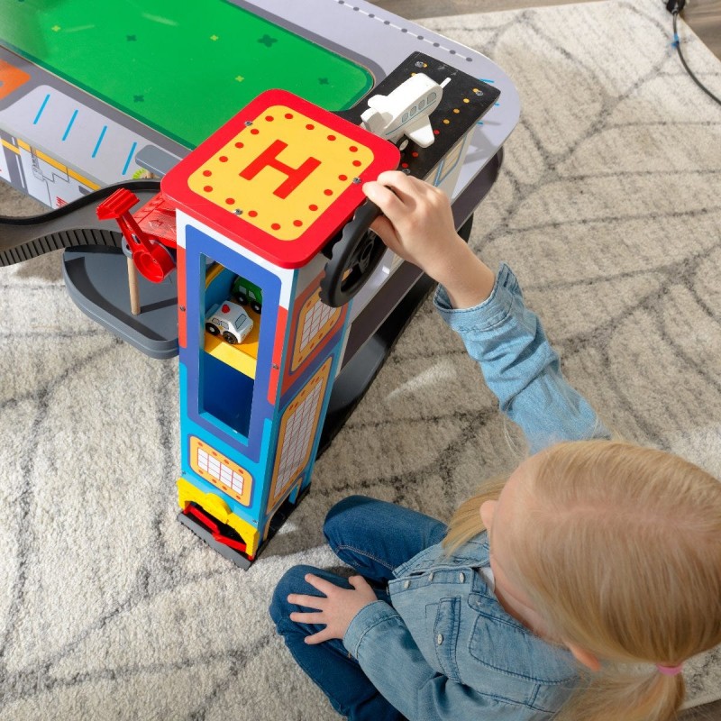 Freeway Frenzy RaceWay KidKraft cu masa de joaca din lemn jucarii cu mai multe nivele de joc