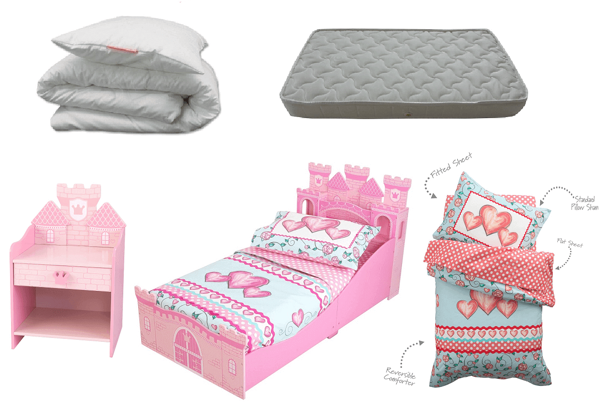 Set mobilier Princess Castle 5 piese - pat noptiera lenjerie platuma perna saltea