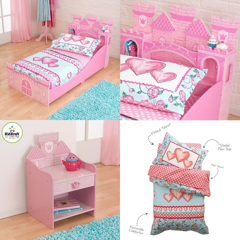 Setul de mobilier Princess Castle are un design elegant si rafinat, culori calde si finisaje care pot aduce cu usurinta atmosfera de castel in camera copilului tau.