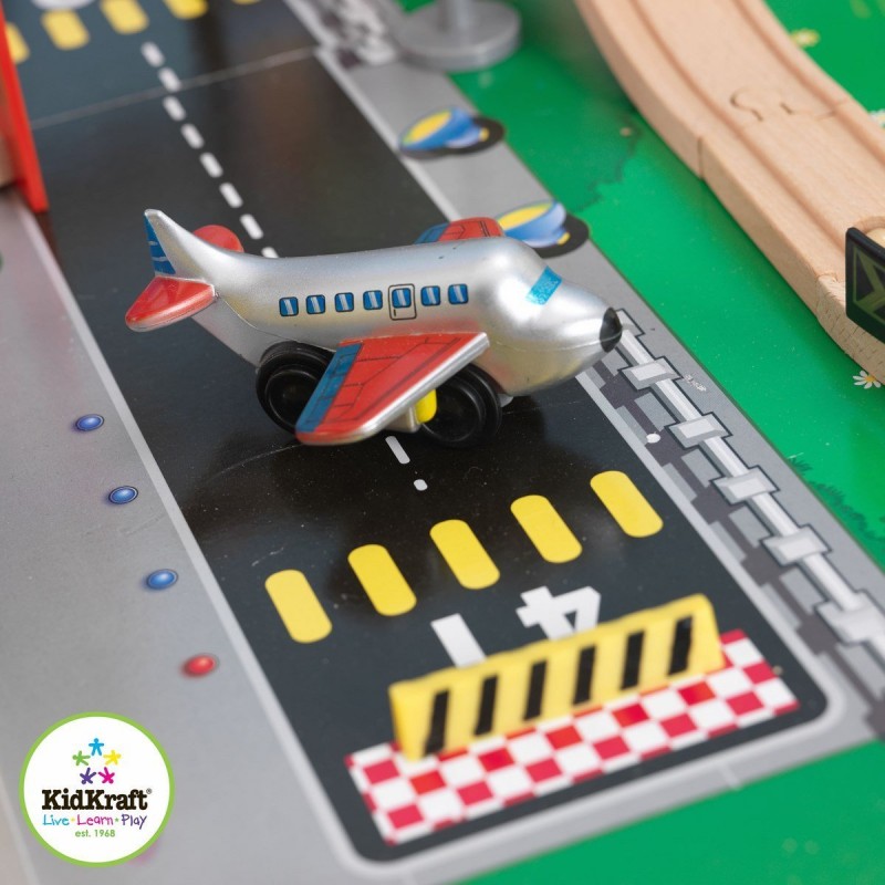 Masa de joaca City Explorer este compatibila cu seturile si vehiculele din lemn din gama KidKraft, Brio si Thomas & Friends